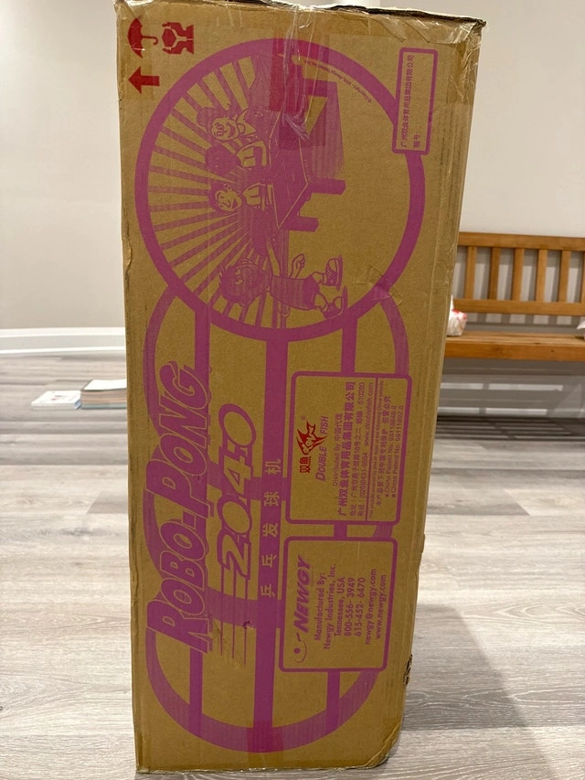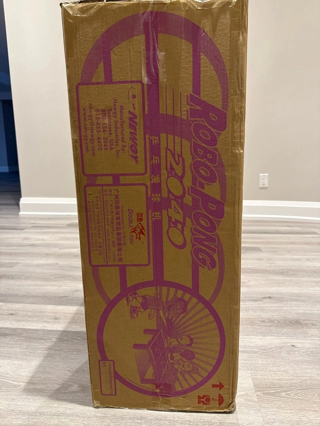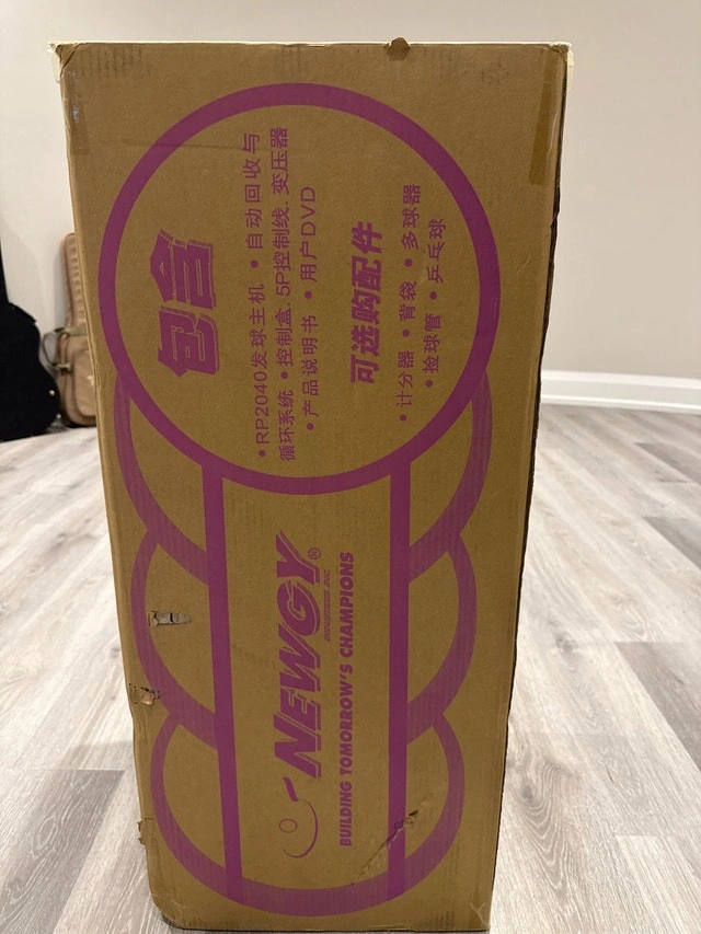 A brand new Newgy Robo-Pong 2040 Table Tennis Robot, still in its original packaging. This training robot is designed to help players improve their table tennis skills through repetitive practice and skill development. A table tennis table is also available.