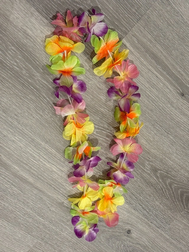 Add a splash of colour to your luau with this vibrant and festive lei! Perfect for parties, costumes, or just adding a bit of island flair to your day. Condition: New. Cash accepted.