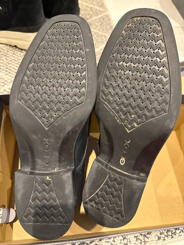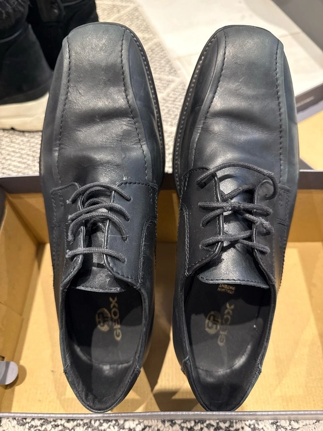 Step out in style with these Geox leather dress shoes, designed for both comfort and sophistication. In used condition, these shoes have been well-maintained and are ready for their next adventure. Perfect for the office or a night out, they offer a breathable sole and a sleek design.