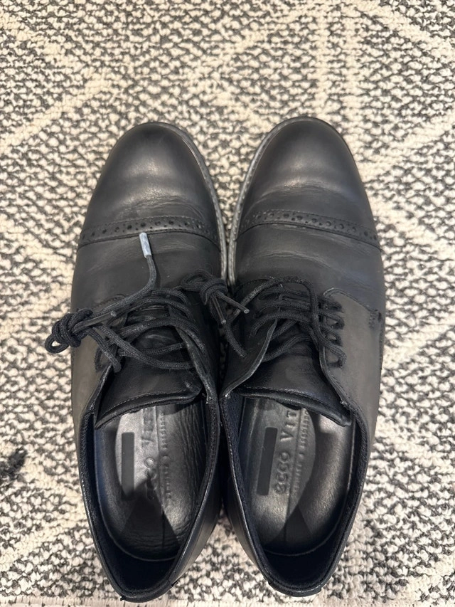 Step up your style game with these gently worn Ecco Vitrus dress shoes in size 39 (US 5-5.5)! Crafted with quality leather, these black dress shoes are perfect for any occasion that calls for a touch of sophistication. These shoes are in great condition, ready for you to show them off. Features: Brand: Ecco, Model: Vitrus, Style: Dress shoes, Colour: Black, Size: 39 (US 5-5.5), Material: Leather. Payment accepted: Cash, Cashless payment.