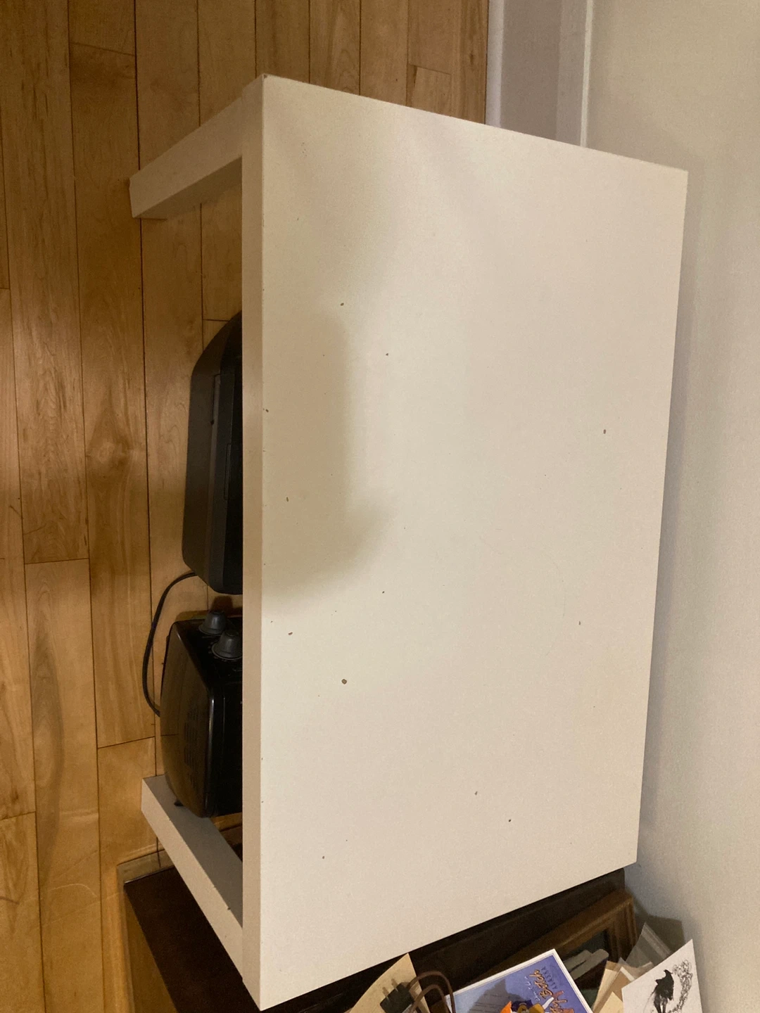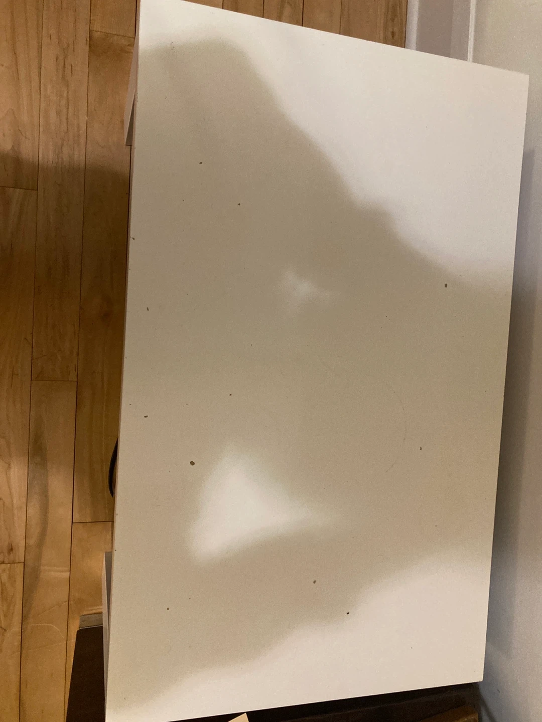 Selling a simple white side table! It's in good condition and would be perfect next to a bed or sofa. It has a clean, minimalist look that would fit in with any decor