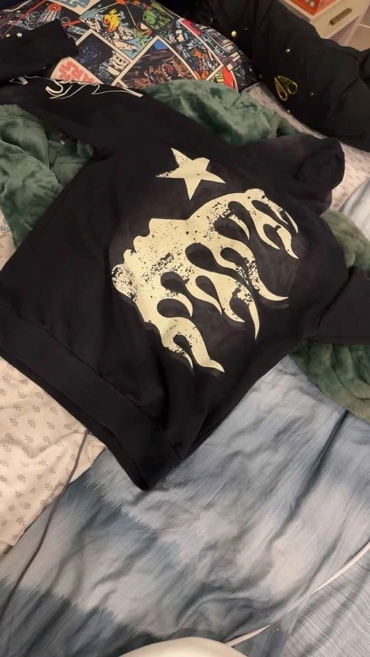 This is a 1:1 model Hellstar Records Future Flame hoodie. It has a fully scannable NFC chip.