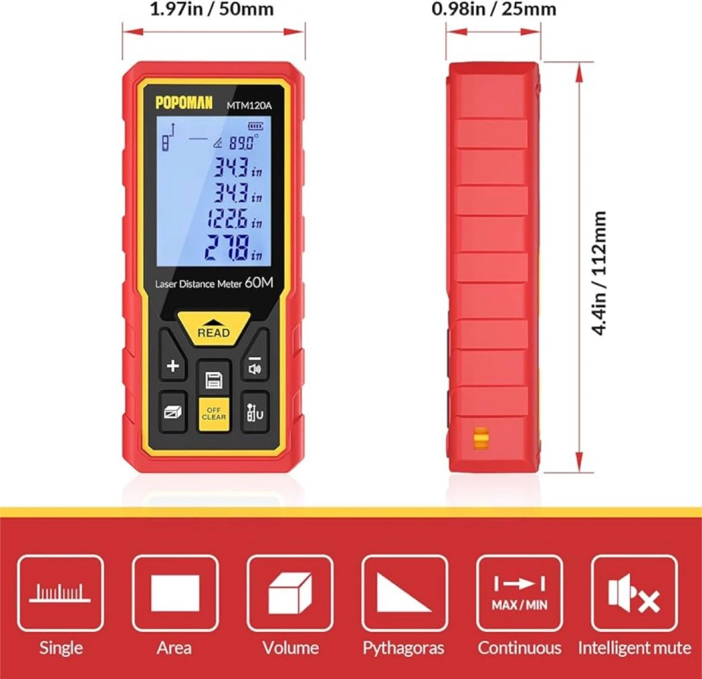 POPOMAN Laser Distance Meter (60m) – Brand New