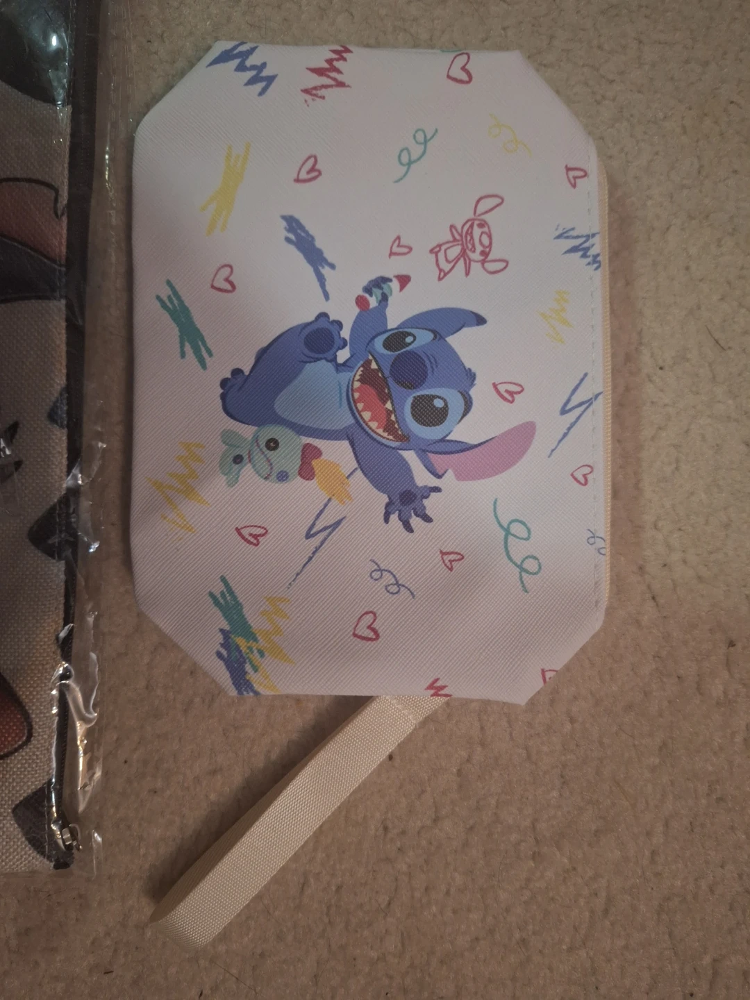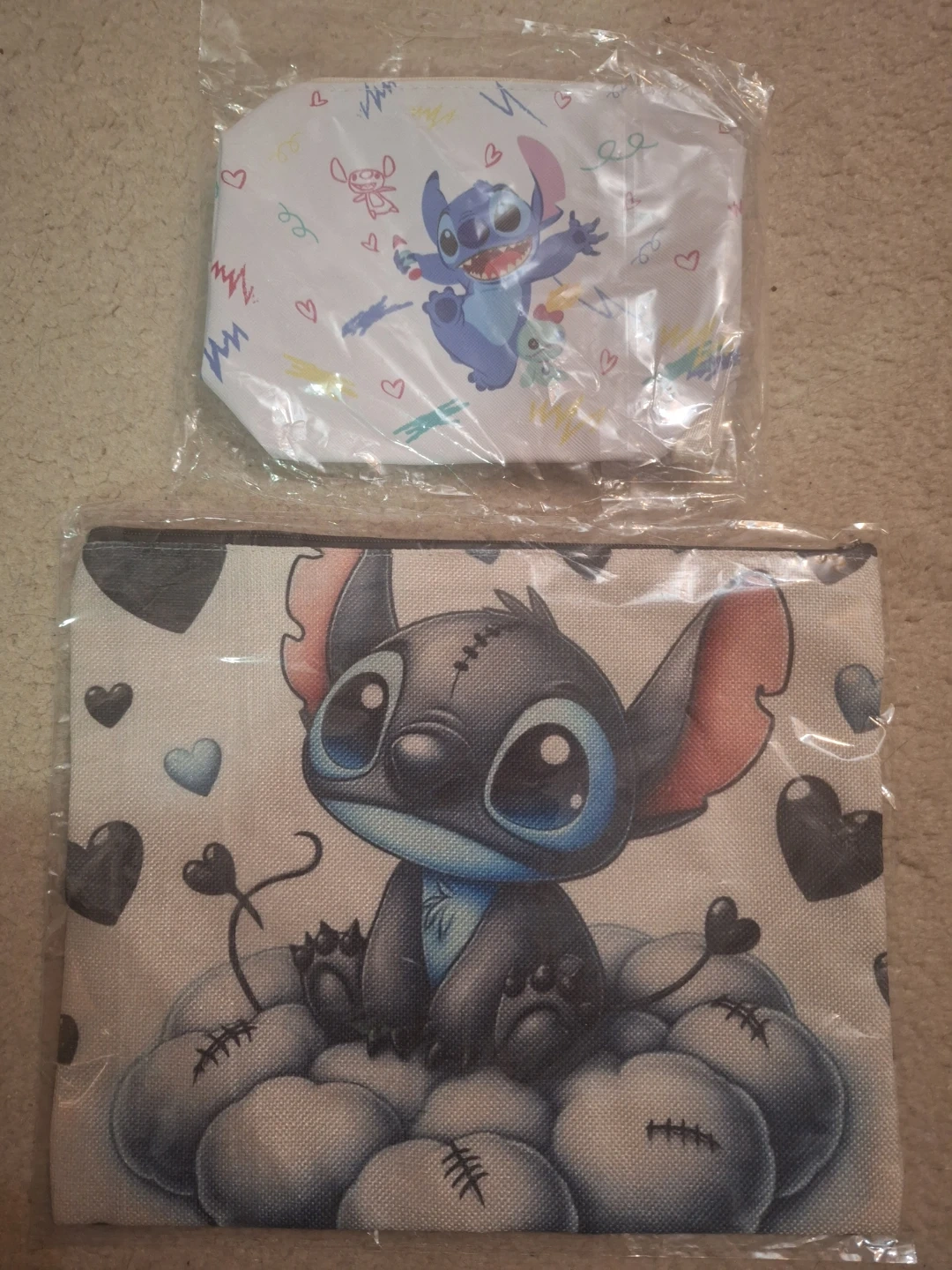 I have 2 brand new Stitch cosmetic bags for sale! They're super cute with a fun design on both sides. Perfect for keeping your makeup or other small items organized