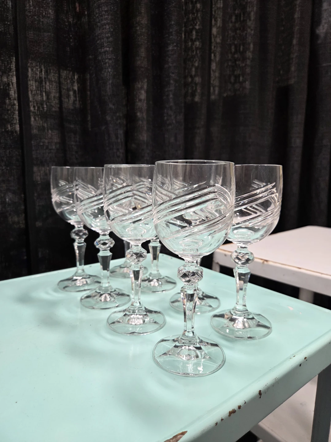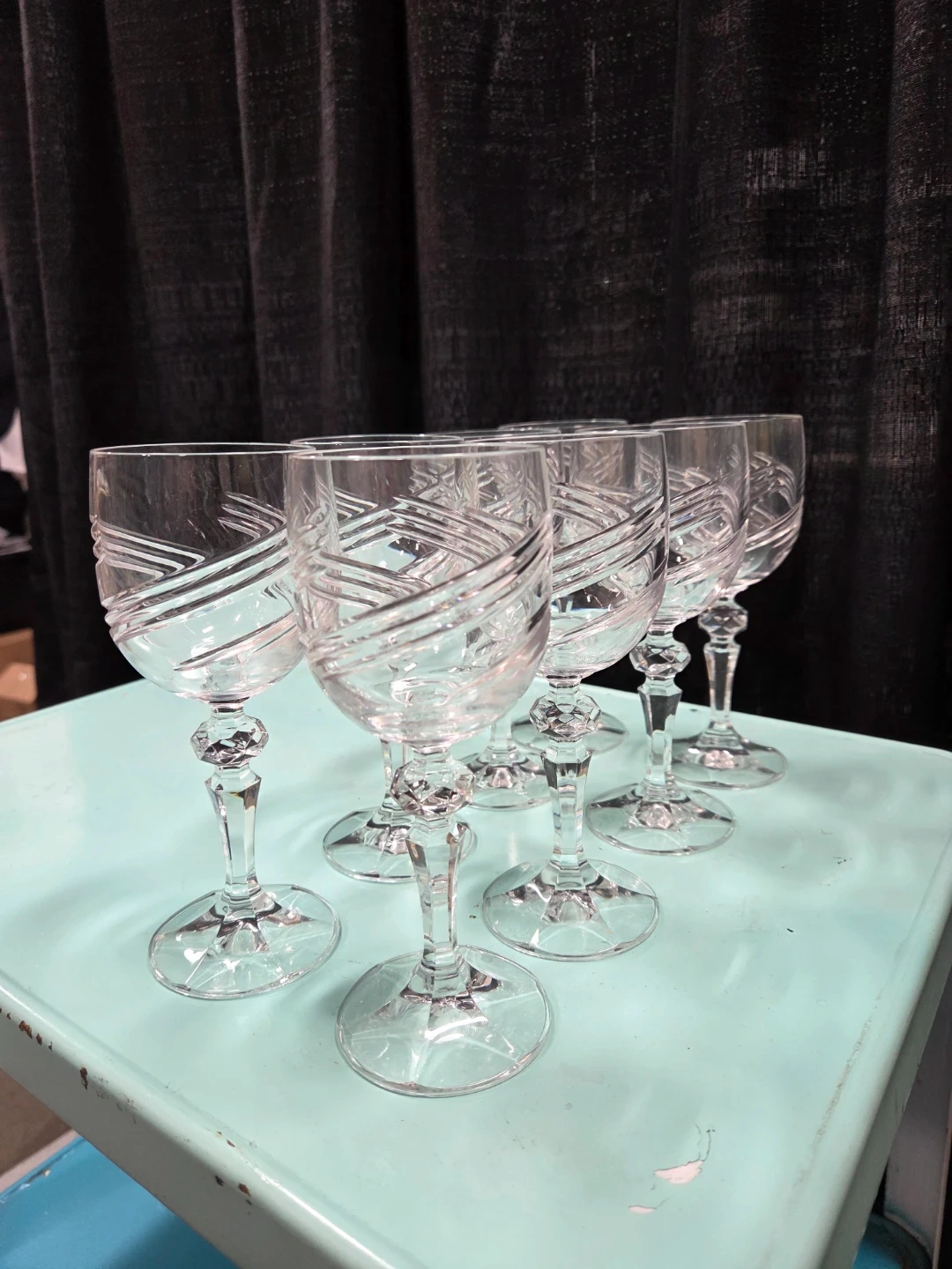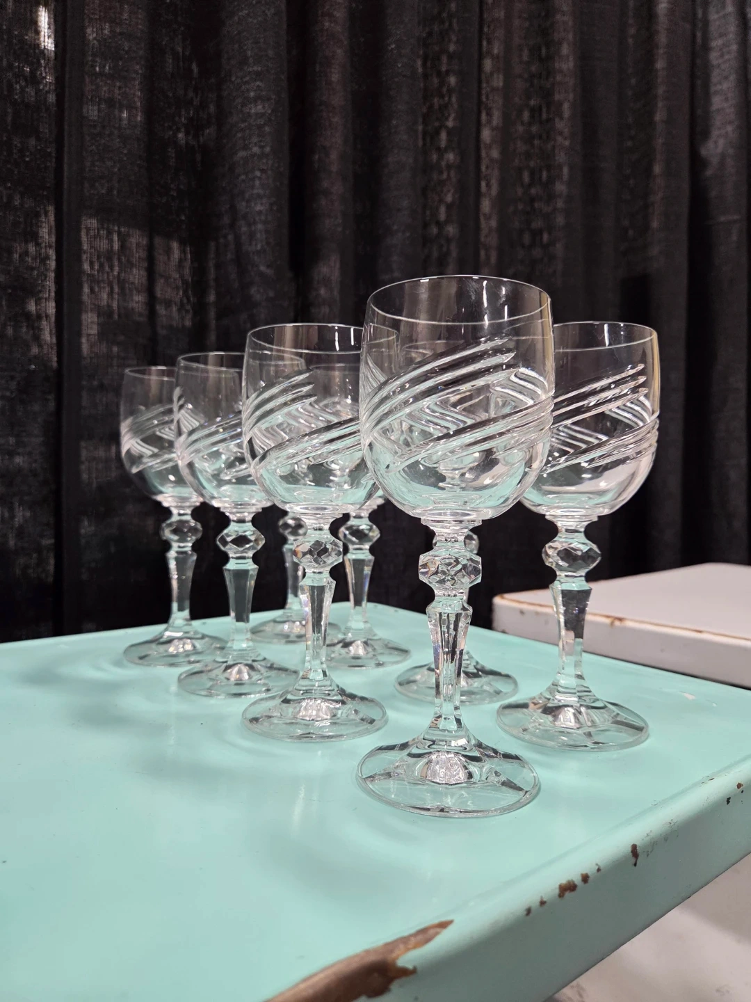 Selling a set of 8 elegant crystal wine glasses. They feature a beautiful cut-glass design and would be perfect for any special occasion or to add a touch of class to your dining table! They are in excellent condition and ready for a new home