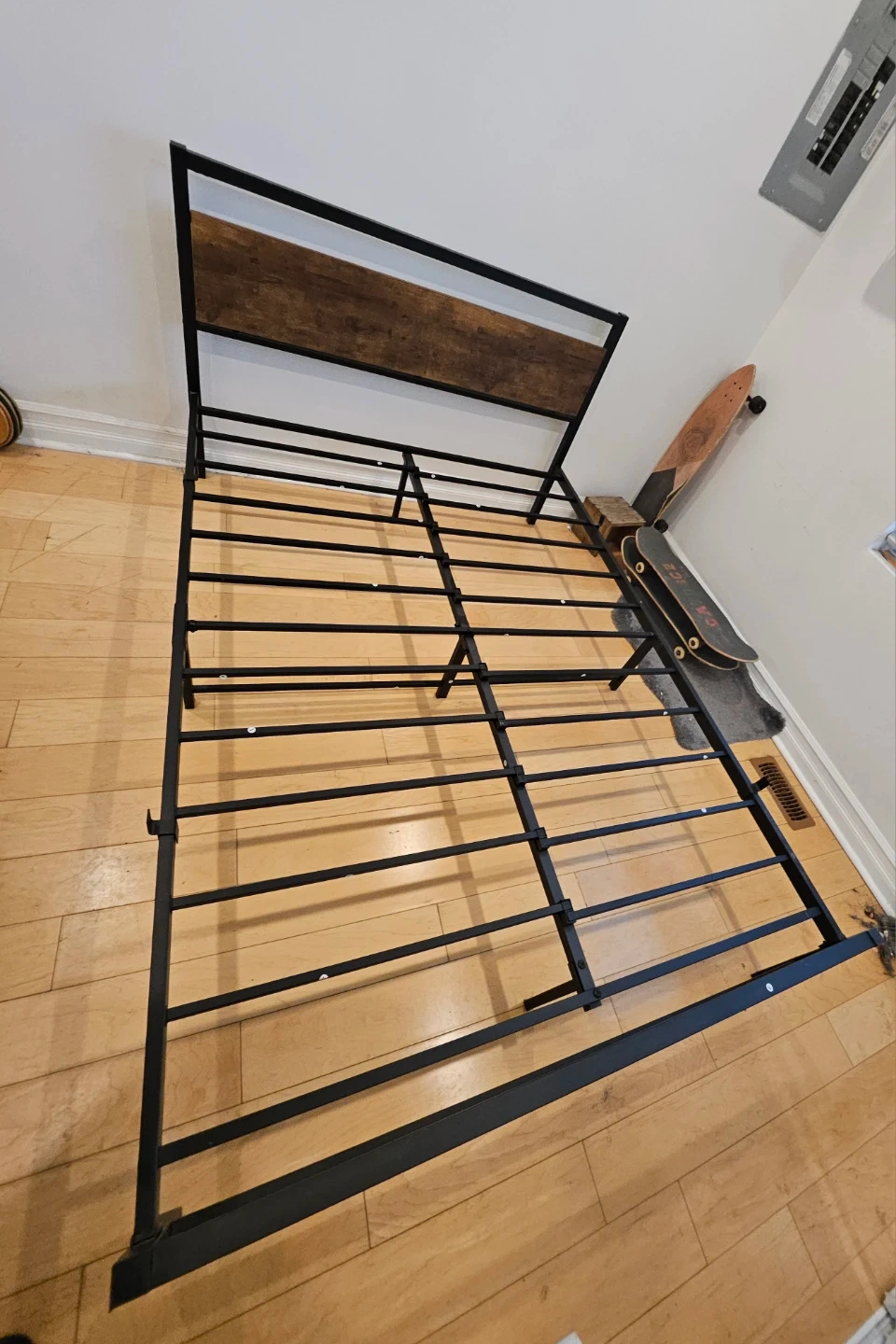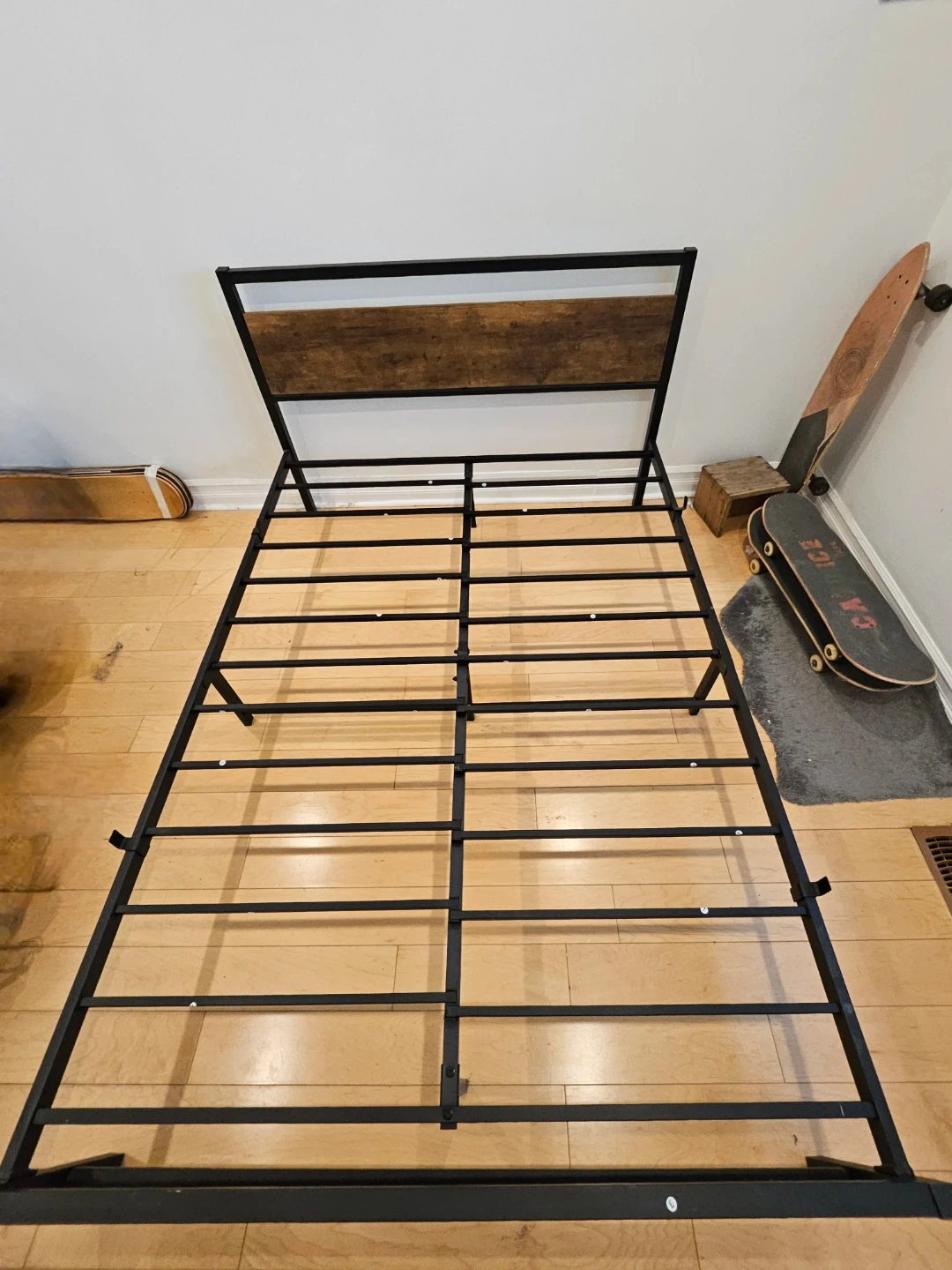 Metal Bed Frame with Wood Headboard - Double/Full