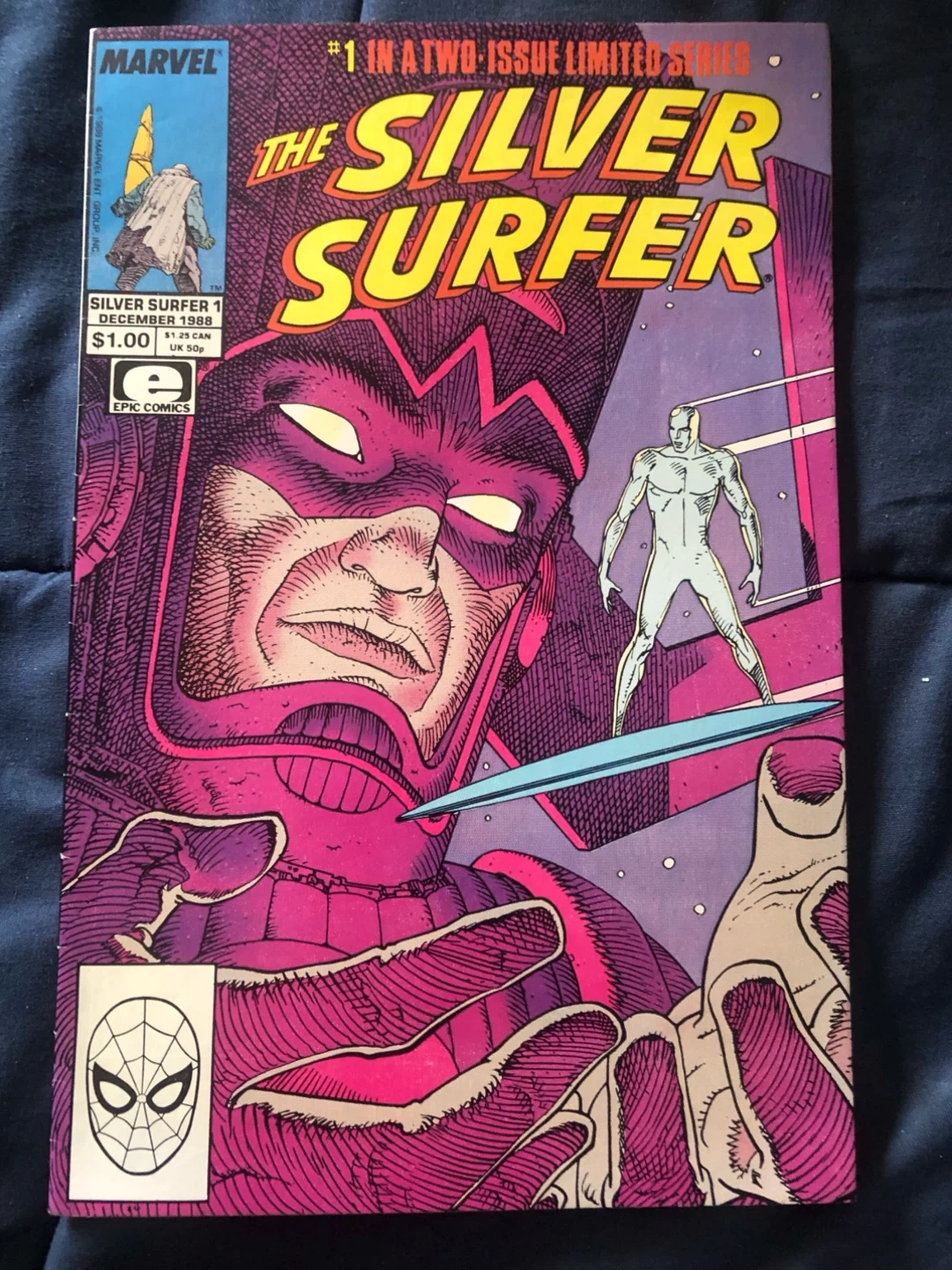 Both issues of the acclaimed Silver Surfer What If…? style story called Parable. Written by Stan Lee with beautiful art by the French artist Jean Girard aka “Mœbius” published by Marvel Comics Epic line in 1988-89 and winner of the Eisner award.