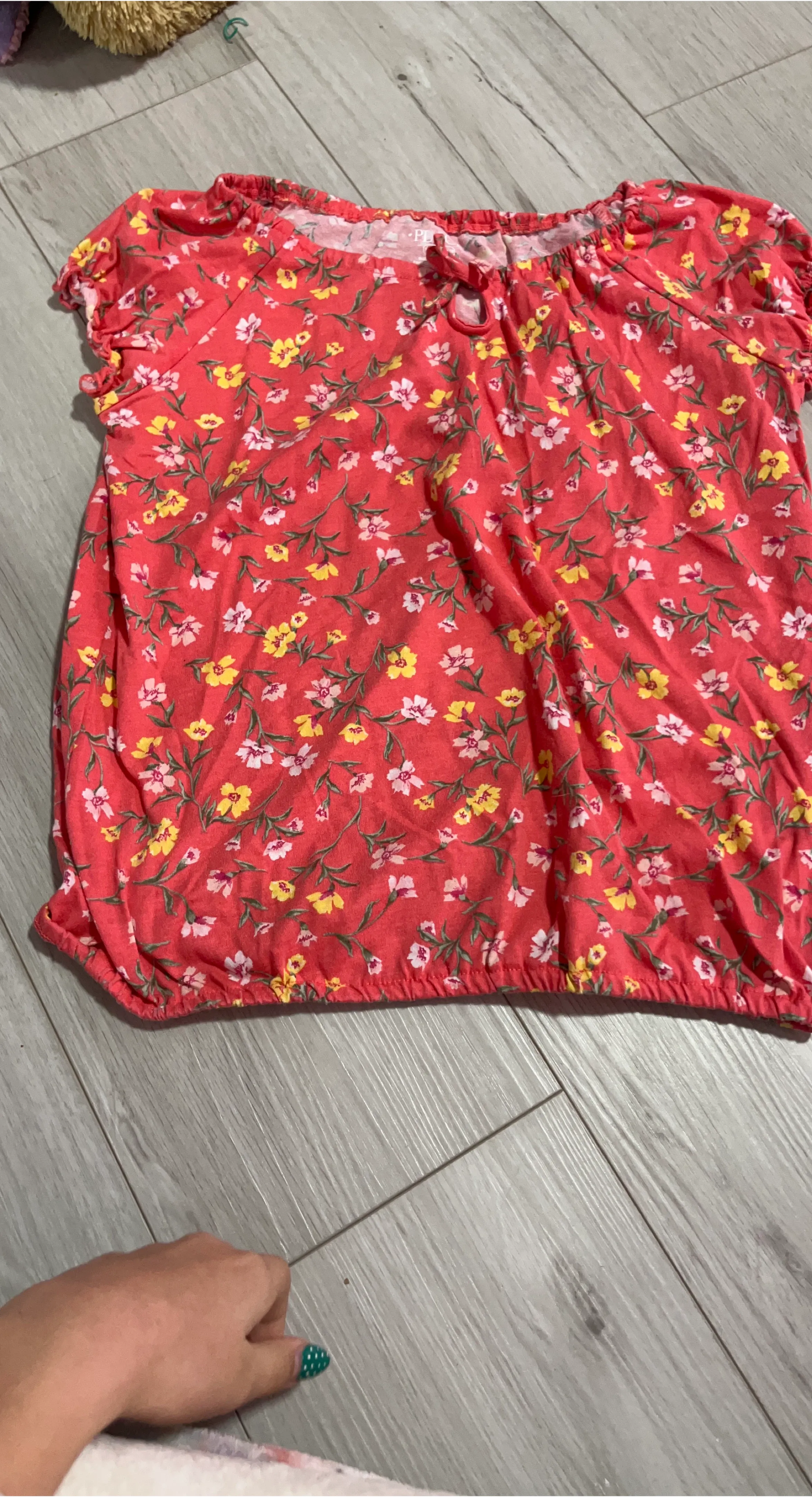 A cute and colourful floral top from The Children's Place! The top is red with a pattern of white and yellow flowers. Perfect for spring or summer!