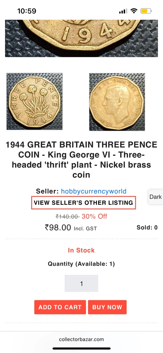 Selling a 1944 Great Britain Three Pence coin. It features King George VI and a three-headed 'thrift' plant. A unique piece of history for coin collectors!