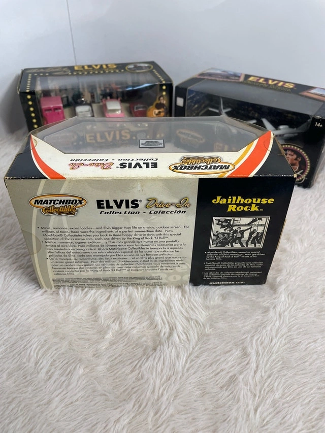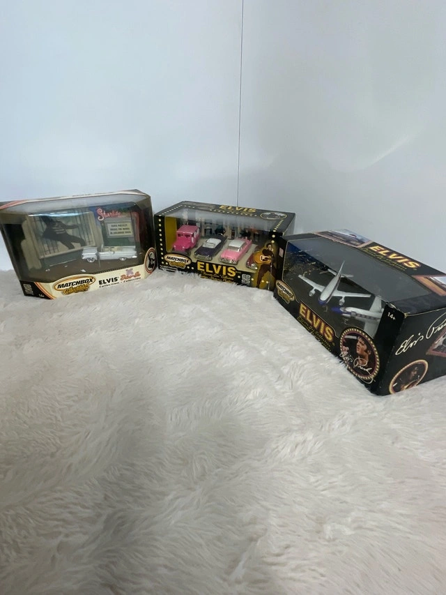 Vintage 2001 Matchbox Toy Collectables featuring Elvis Presley. Includes items like the Drive In, Favorite Car, and Private Jet. Selling as a set for $65, or individually for $25 each. Pickup available near Bayview and Davisville. Feel free to message if you have any questions!