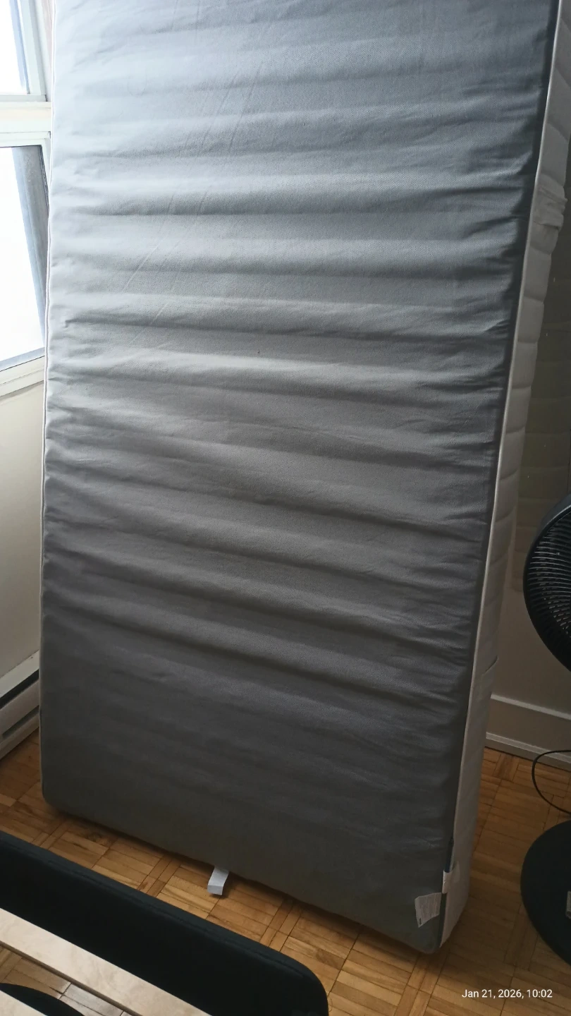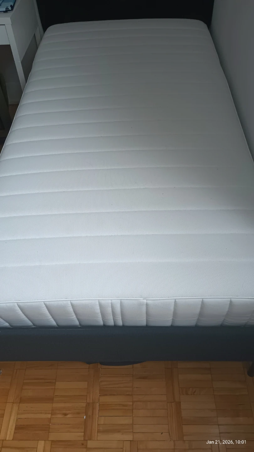 Selling a gently used Ikea twin mattress (20cm) thick mattress! It's in great shape and ready for a new home. It has a white top and gray bottom. Perfect for a good night's sleep!