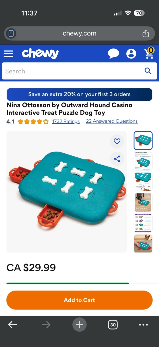 Keep your furry friend entertained with this interactive treat puzzle! This Nina Ottosson by Outward Hound Casino puzzle is a fun way to challenge your dog and reward them with treats. Gently used