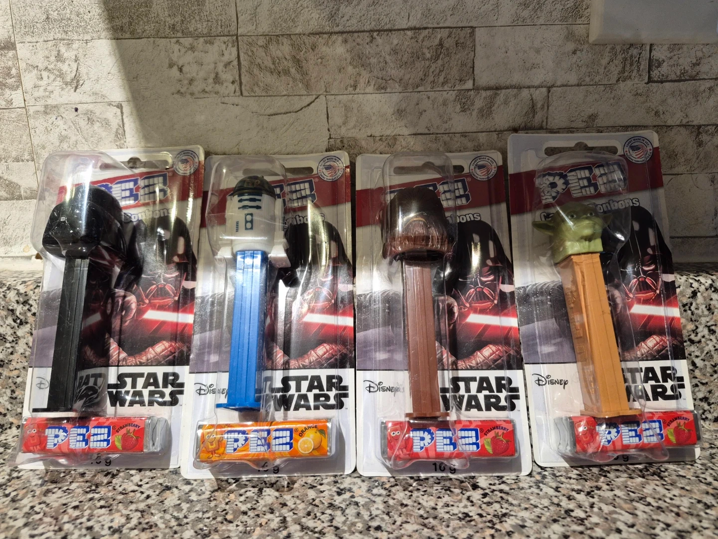 Selling a set of Star Wars PEZ candy dispensers! The set includes Darth Vader, R2-D2, and Yoda.Chewbaka. All are in their original packaging and ready to dispense some PEZ candy!