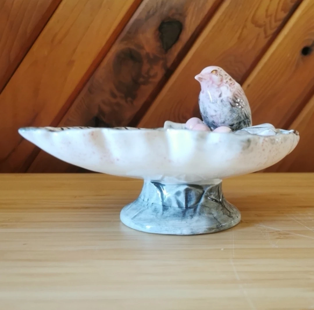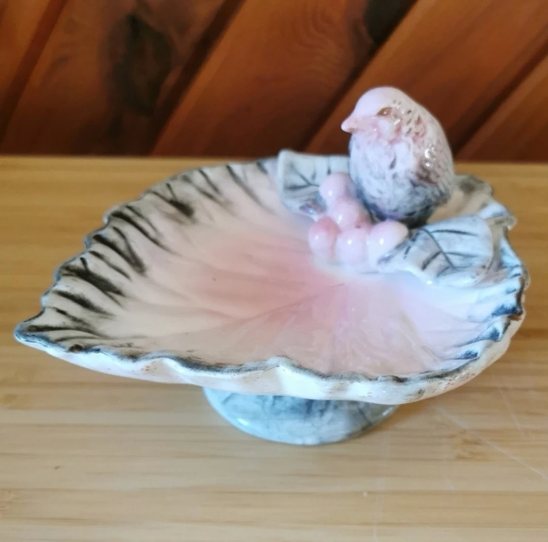 Ucagco Vintage Leaf And Bird Hand-painted Trinket Dish. Beautiful Trinket For Your Jewelry, Trinkets, Candy, etc.