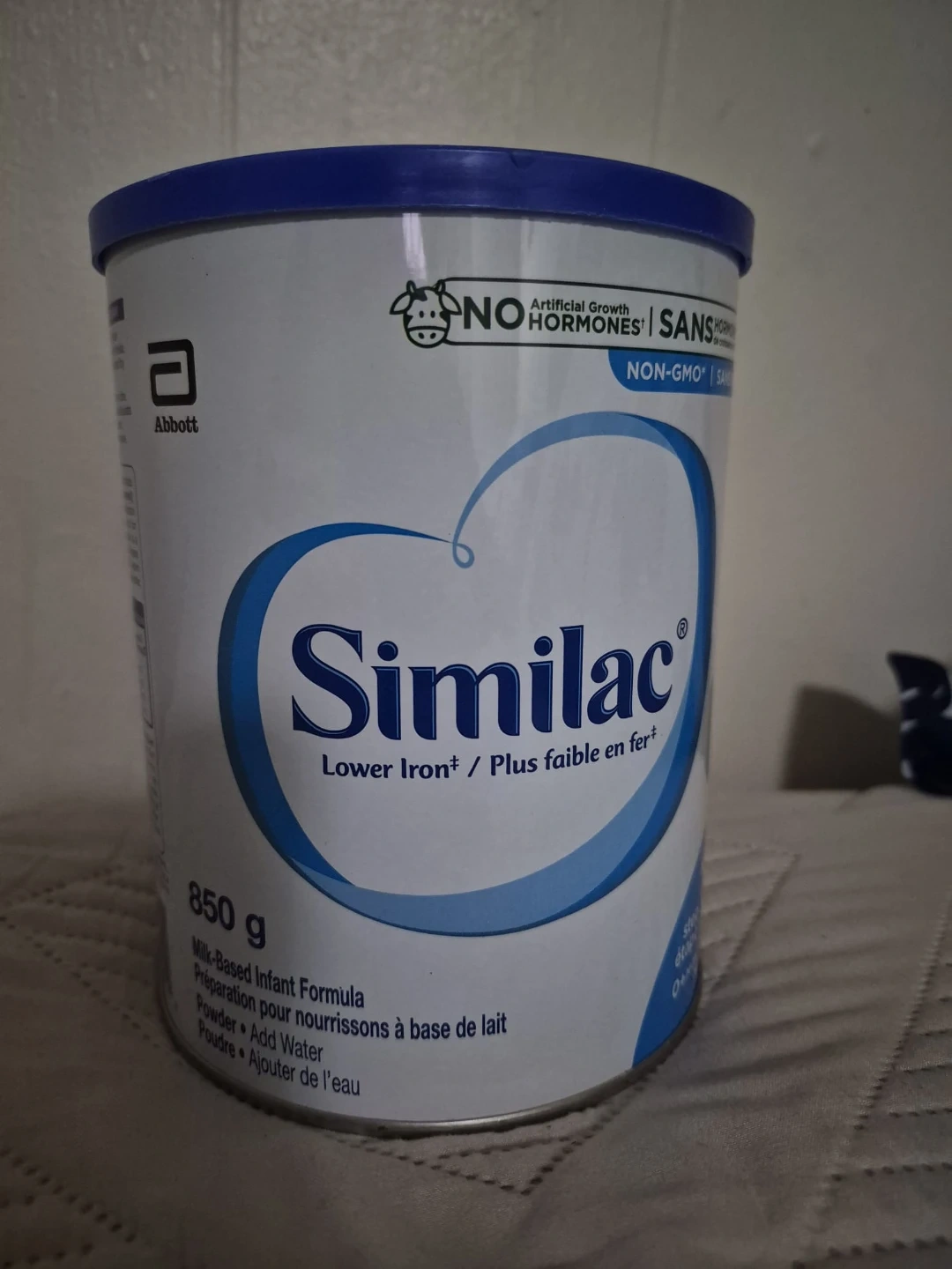 Selling a can of Similac Lower Iron+ milk-based infant formula. It's in great condition and ready for your little one! The can contains 850g of formula.