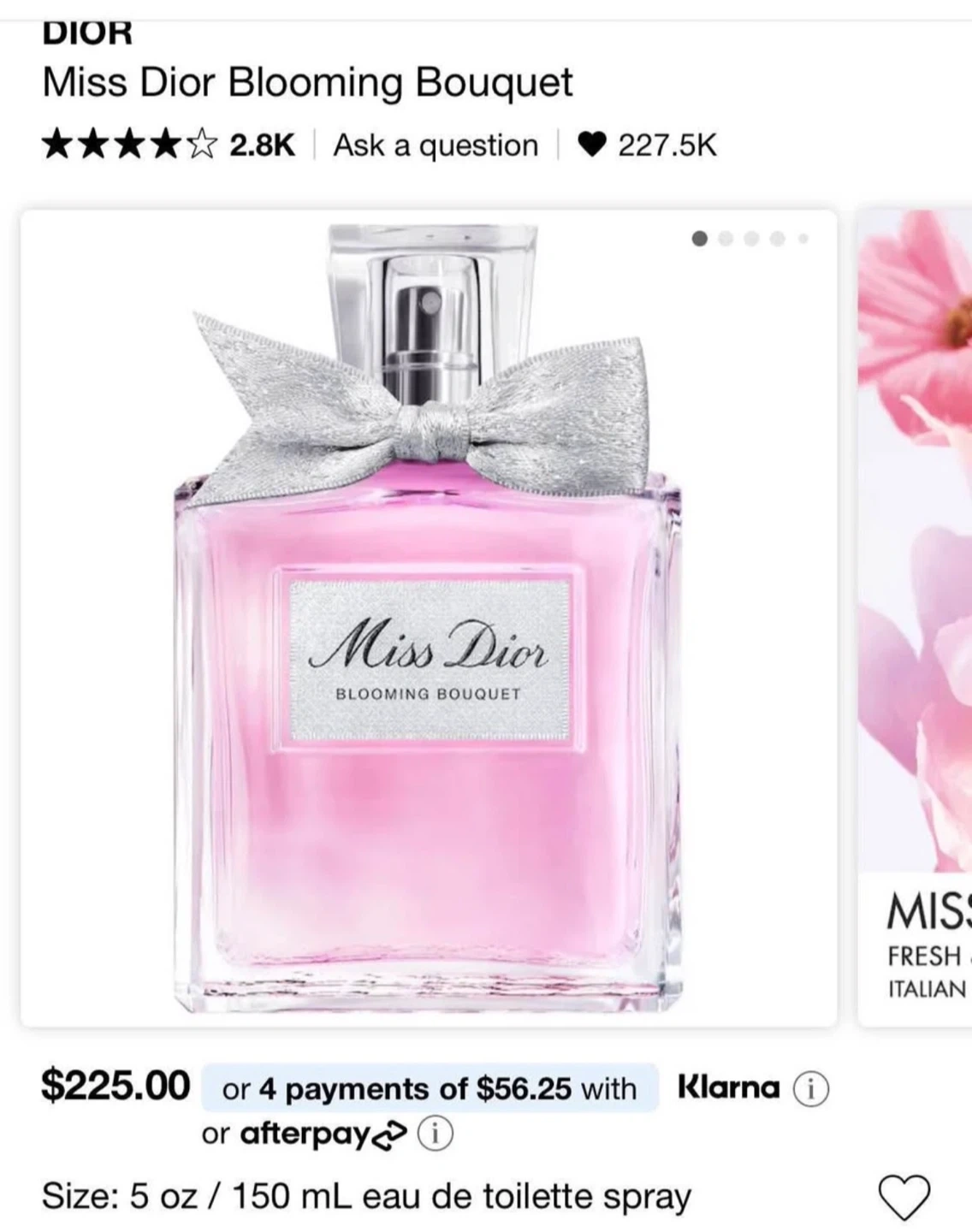 Selling a bottle of Dior Miss Dior Blooming Bouquet. It's a 150mL eau de toilette spray. Brand new never opened