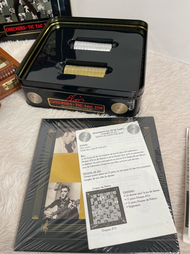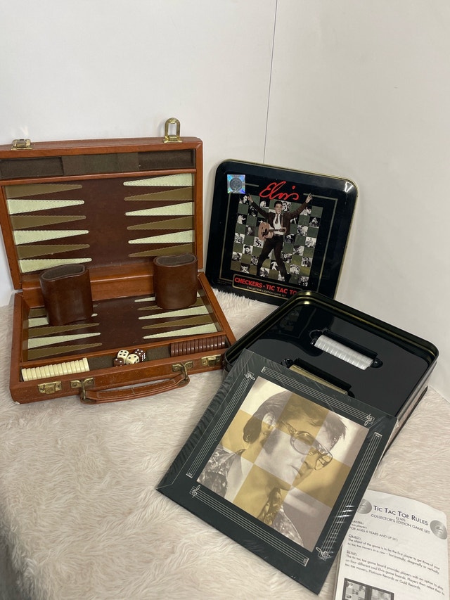Vintage game set featuring Leather Backgammon, Elvis Presley checkers, and Tic Tac Toe. $60 for all, or $40 each. Pickup available in the Bayview Davisville area. Please check out my other listings for more items.