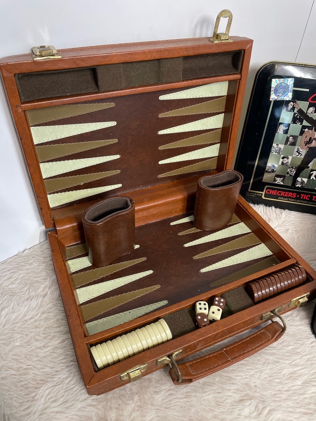 Vintage Game Sets Leather Backgammon Elvis Checkers Tic T