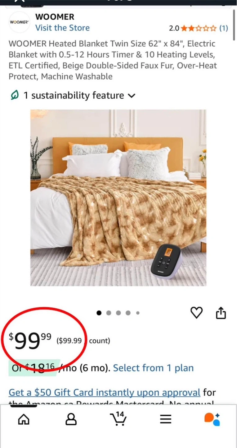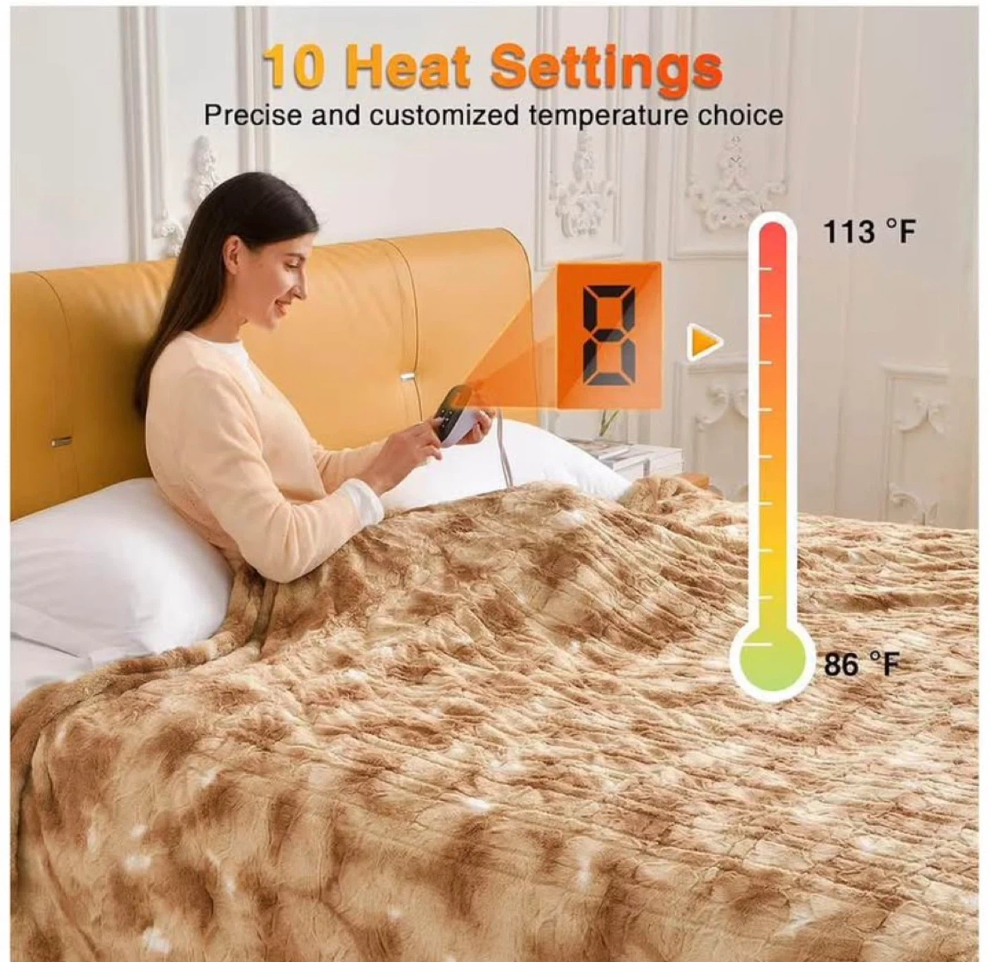 Stay cozy with this WOOMER heated blanket! It's a twin size (62" x 84") and features a beige double-sided faux fur. It has 10 heat settings, an electric blanket with 0.5-12 hours timer, and over-heat protection. It's also machine washable! Originally bought for $99.99