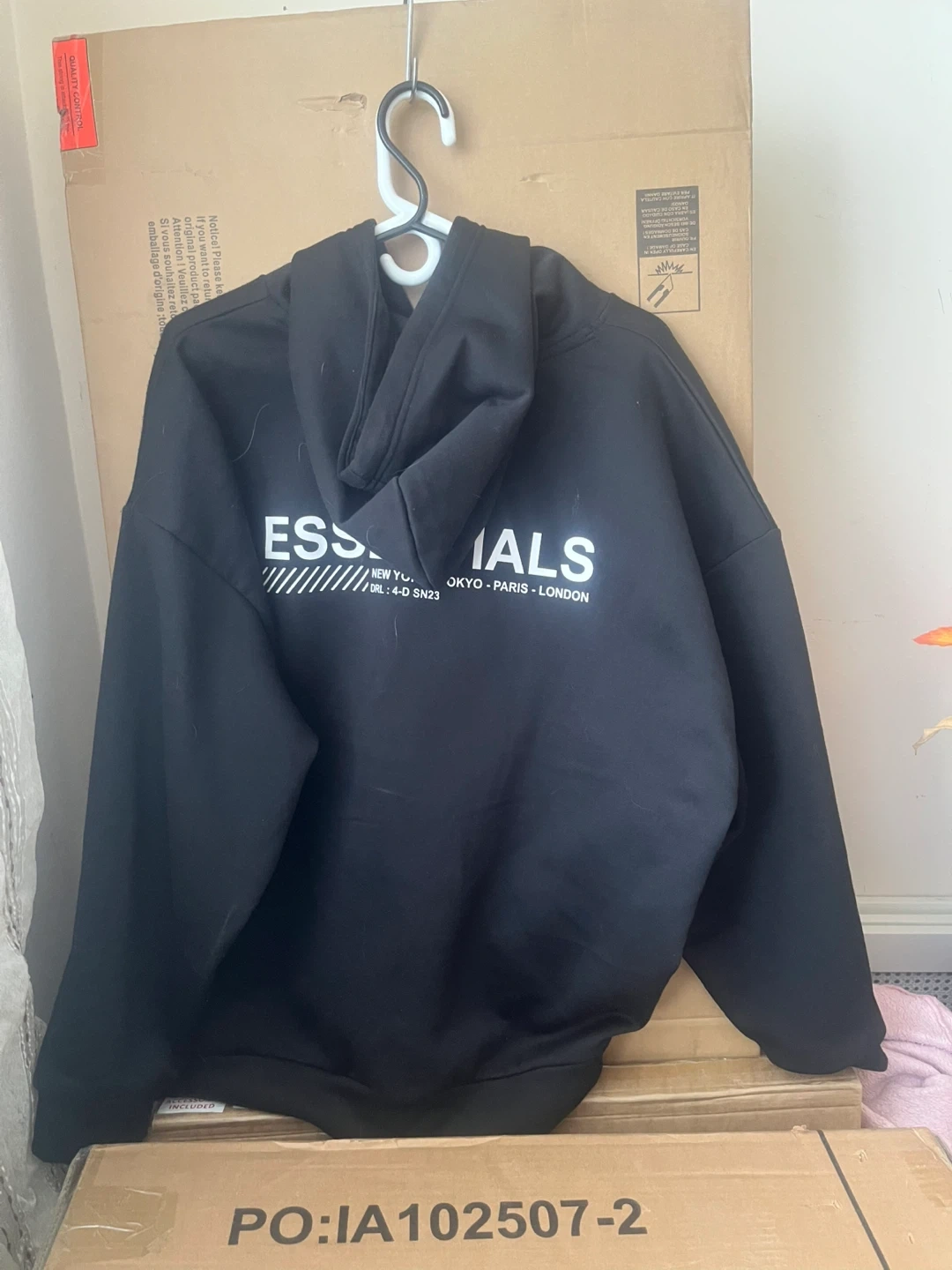 Buy & SellEssentials Black Hoodie - Size LargeEssentials Black Hoodie - Size Large$401 : 1 rep it’s not the best but it passes Getting rid of it because it’s to big for meConditionLike newSizeLarge BrandEssentialsWHERE TO MEETCheck LocationView MapSELLERverifiedTreyEglinton E904 reviews2 chats·0 favorites·34 viewsSEND CHAT TO SELLERHi Trey! I’m interested in your listing.Hi Trey! I’m interested in your listing.Get the Karrot app to chatSign In to chat