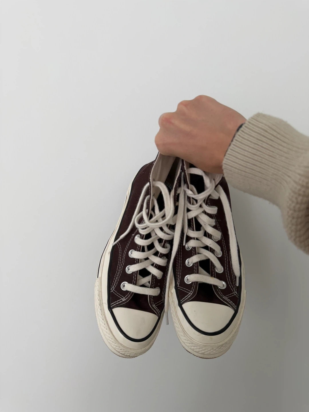 Selling a pair of Converse Chuck Taylor All Star high tops in a nice brown colour! They're in great shape and ready for a new home. Classic style that goes with anything!