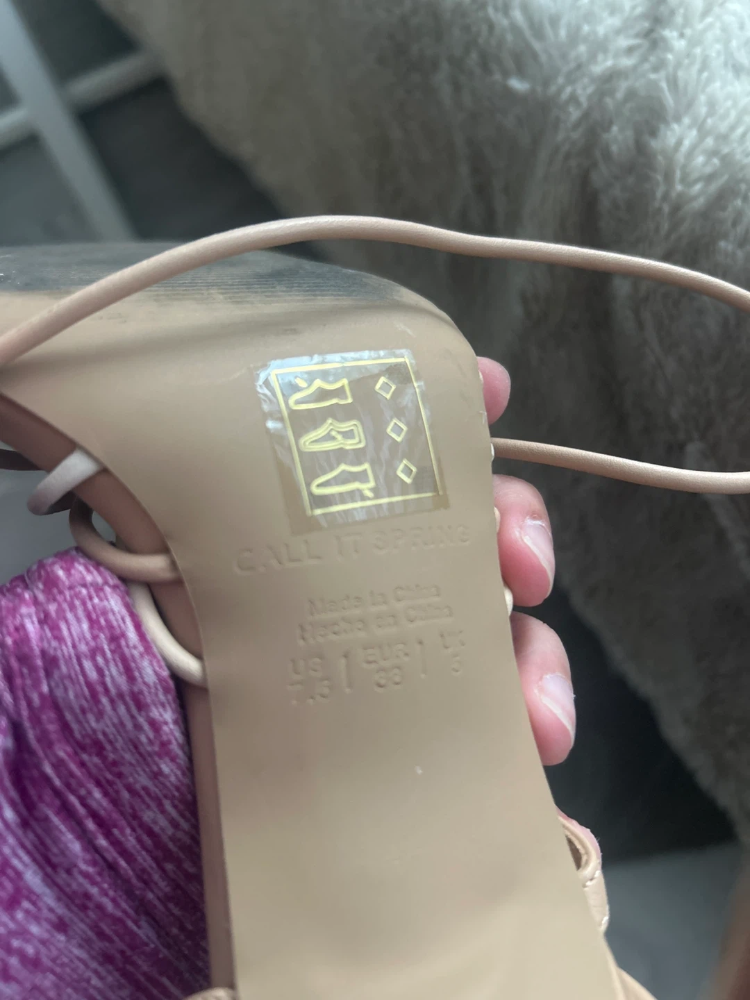These Call It Spring heels are a size 7. They are a nude colour with a tie-up design. Perfect for a night out!