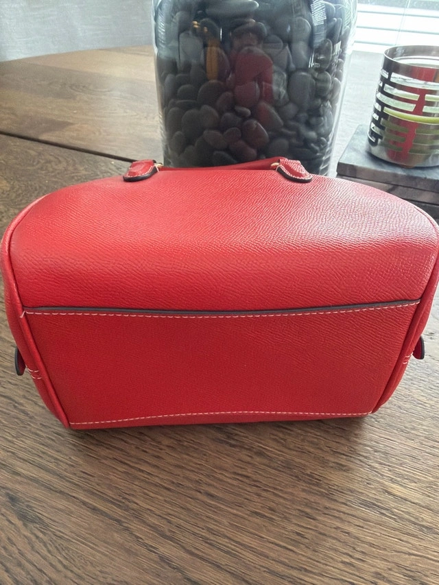 I'm selling a Coach Sydney Satchel in mustard yellow, crafted from crossgrain leather. This satchel includes an inside multifunction pocket and a detachable strap for versatile wear. Colour: Miami Read. Material: Crossgrain leather. Closure: Zip. Lining: Fabric. Handles: 2 3/4" drop. Strap: Detachable with 22 1/2" drop. Dimensions: 8" (L) x 6" (H) x 5" (W). Style No.: CA202. Condition: New. Payment accepted: Cash, Cashless.
