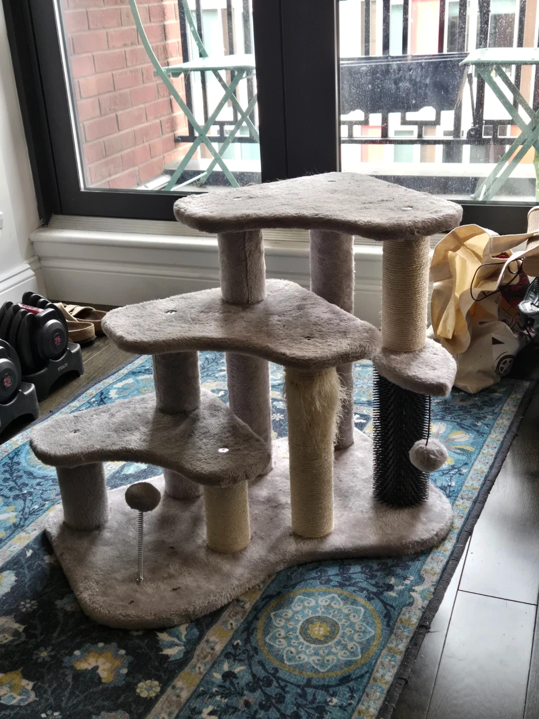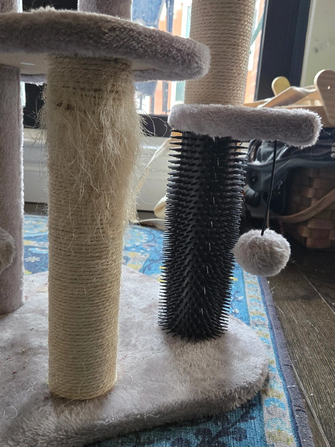Bottom scratcher has been well-used but top is still very intact. Also includes a self-grooming station.