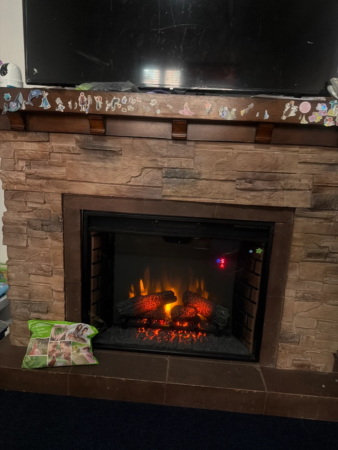 Electric fireplace in good condition! Perfect for adding a cozy touch to your living space. It has a realistic flame effect and adjustable temperature settings.