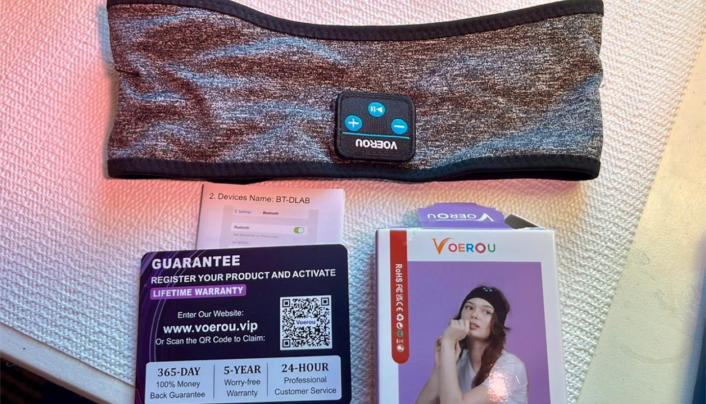 This VOEROU sleep headphones headband is perfect for sleeping, working out, or just relaxing! It's a Bluetooth sports headband with built-in HD stereo speakers. It's adjustable, wireless, and comfortable for side sleepers. It's also fully washable, making it perfect for outdoor sports.