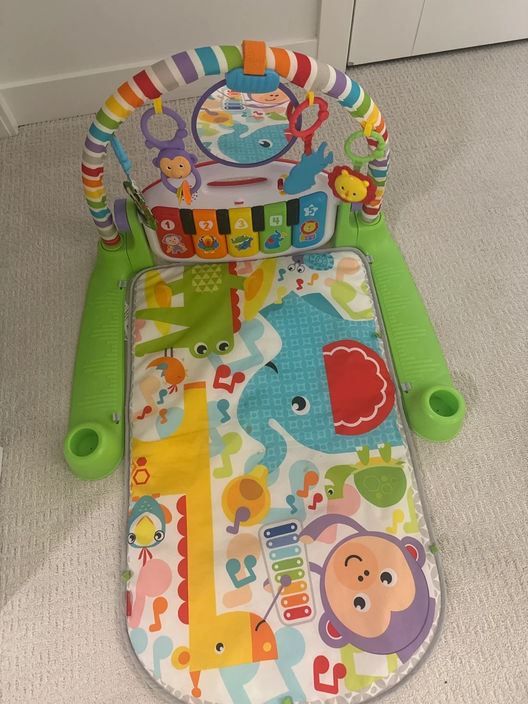 Selling a Fisher-Price Deluxe Kick & Play Piano Gym. It's in great condition and ready for a new little one to enjoy! Comes with the piano, mat, and overhead toys. Perfect for tummy time and developing motor skills