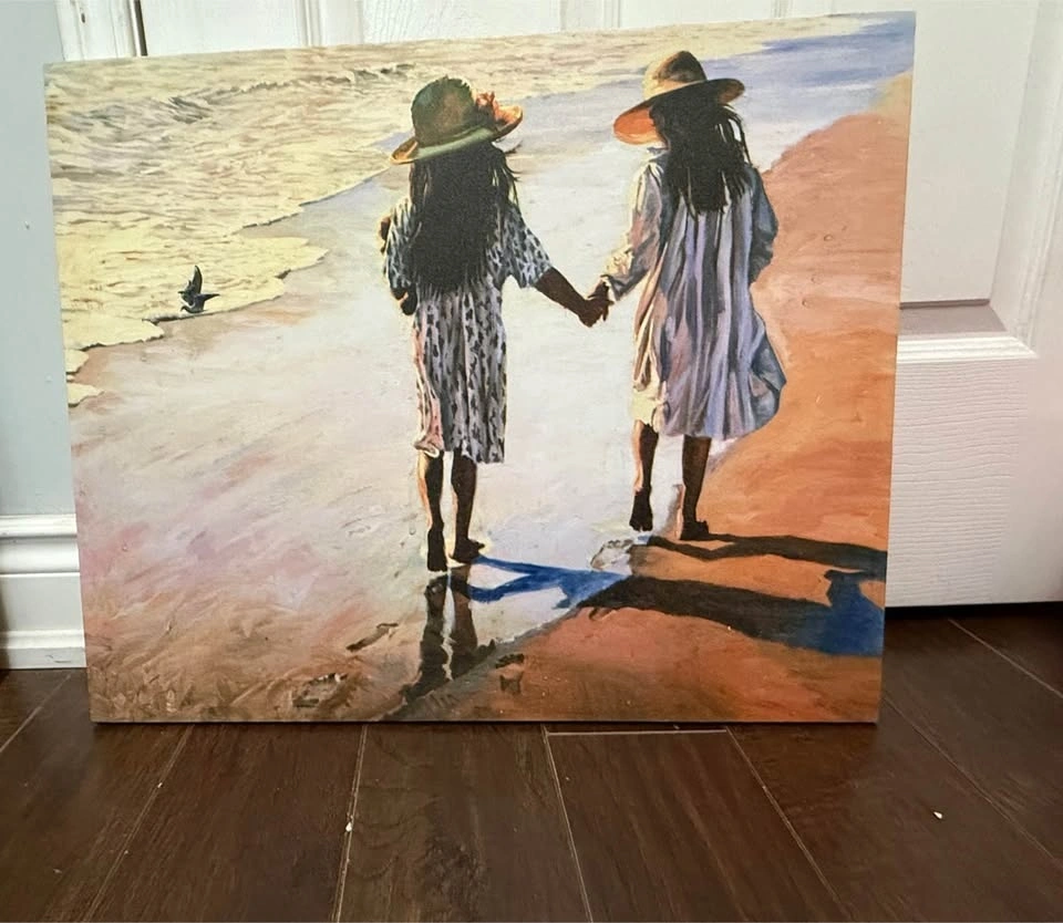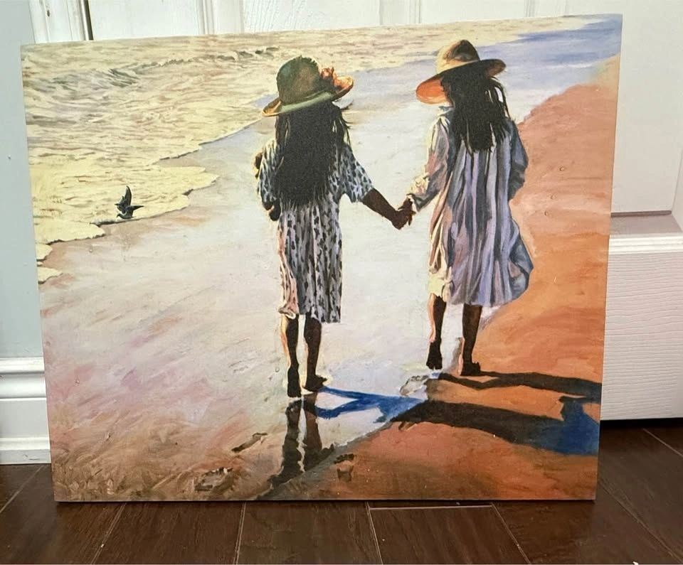 "Sisters at the Shore" Impressionist Style Canvas Print