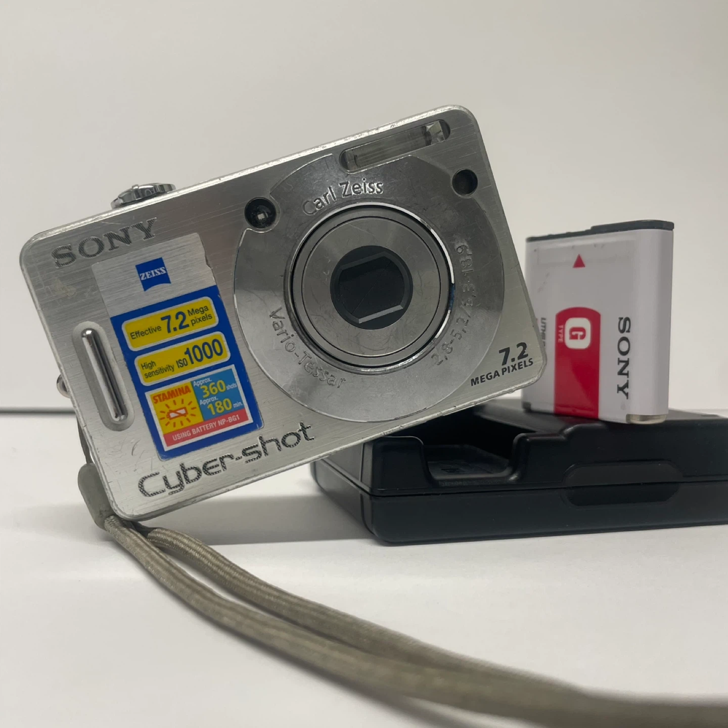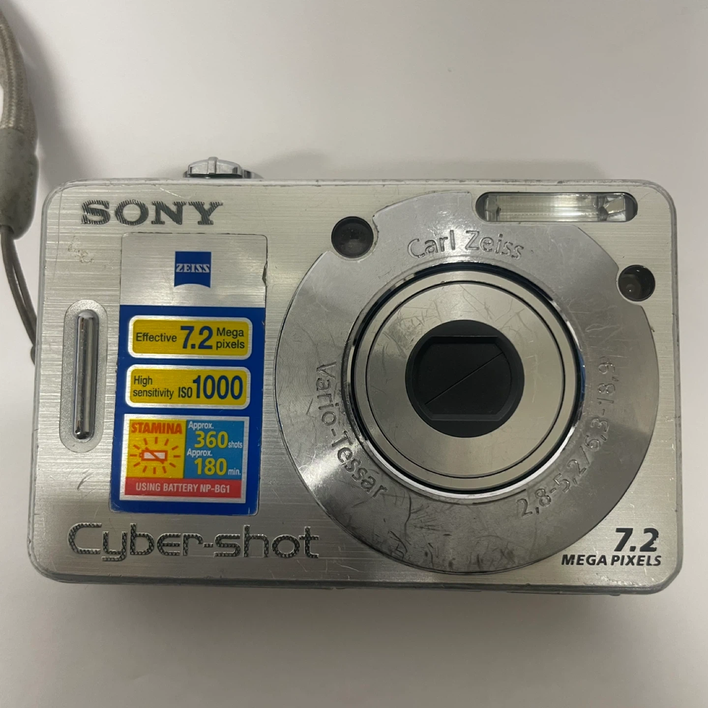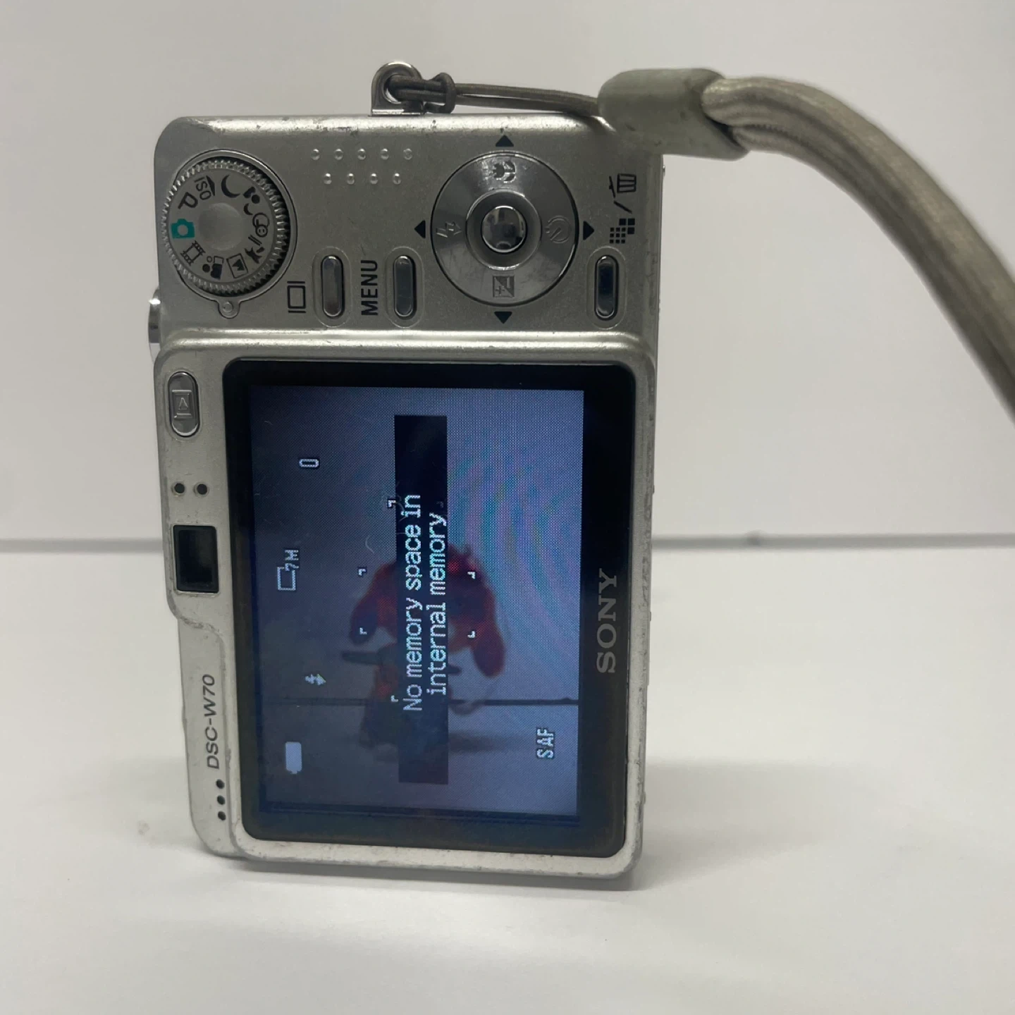 Selling a used Sony Cyber-shot DSC-W70 digital camera. It shows some signs of wear, but is still functional. It has a 7.2 Mega pixels camera and uses a Memory Stick Duo.