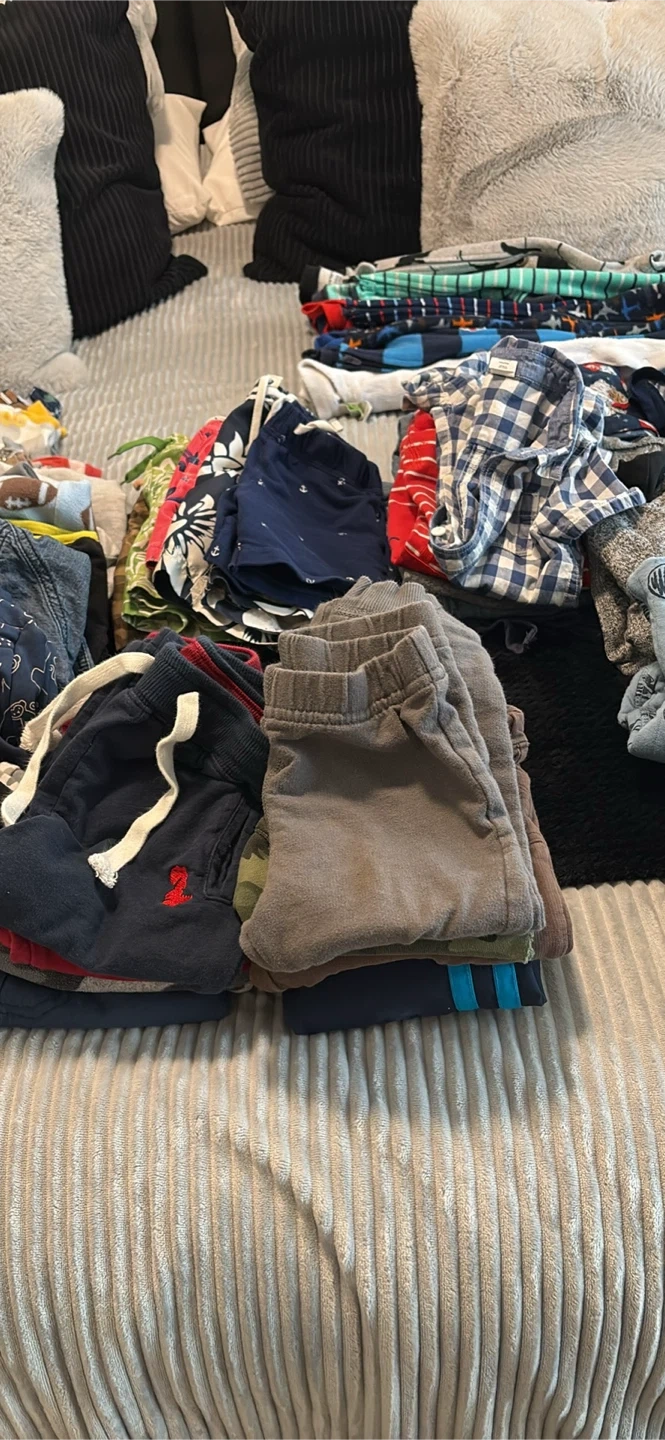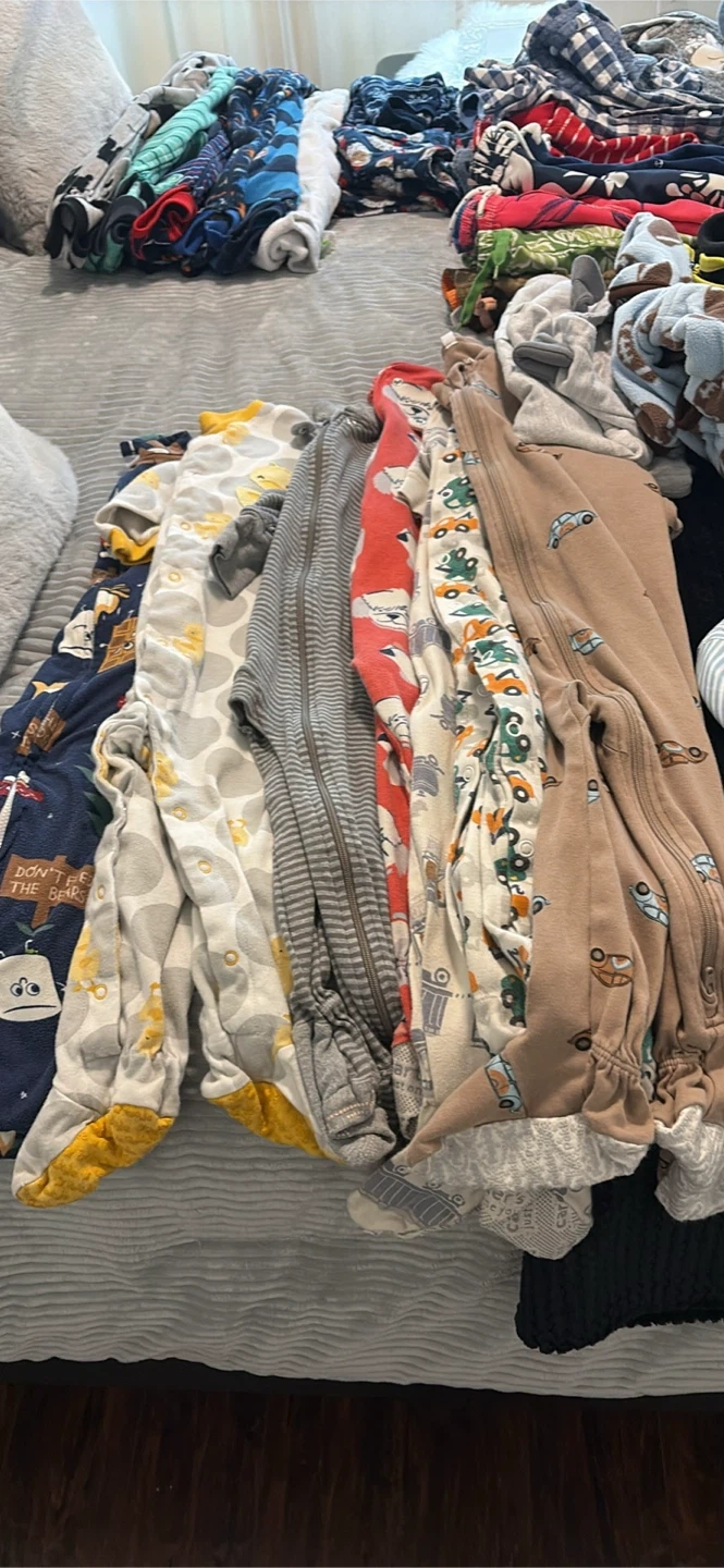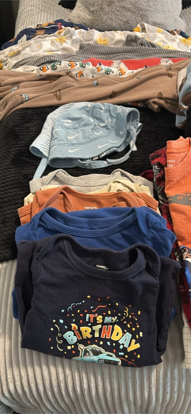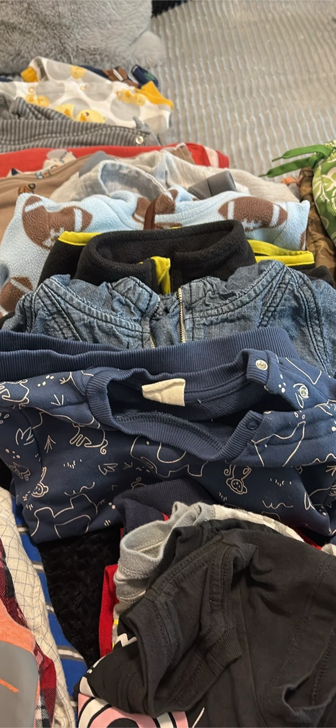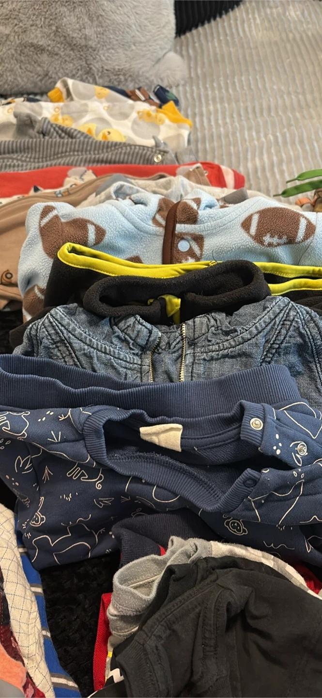 A mixed lot of baby and toddler clothing! There's a variety of items including shirts, pants, onesies, and more. Brands include Puma, Carter's and H&M. Perfect for stocking up on essentials!