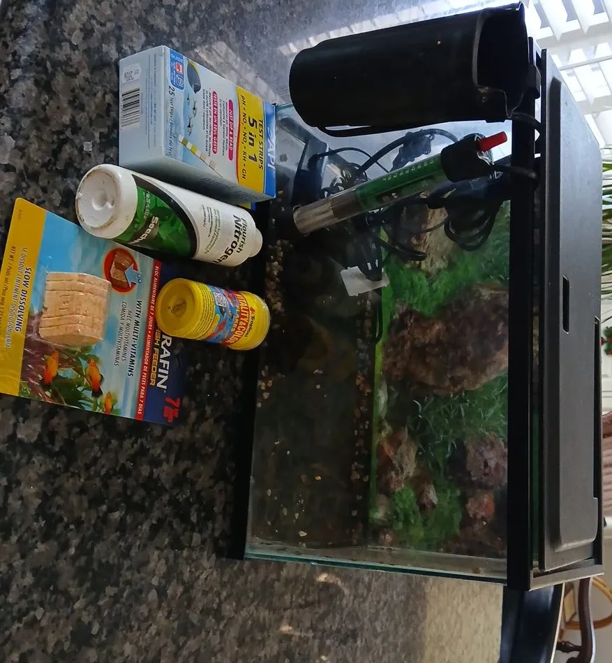 Selling a fish tank that comes with some extra accessories! Included are API Test Strips 5 in 1, Seachem Flourish Nitrogen, and TetraFin Fish Feeder. Everything you need to keep your fish happy and healthy!