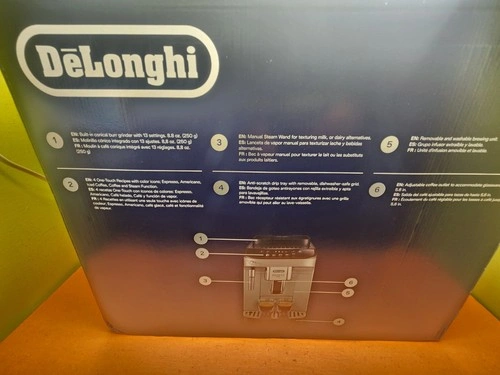 Machine was tested and it works like new with all accessories included. The De'Longhi Magnifica ECAM29034SB Automatic Espresso & Coffee Machine is a high-quality espresso machine designed for home use. This machine, with a sleek silver design, is powered by a wall plug-in and operates at 120V. It is capable of making delicious espressos and cappuccinos using whole bean coffee. The machine is easy to use and maintains the quality of coffee drinks typically found in a professional coffee shop. With its convenient features and efficient performance, the De'Longhi Magnifica ECAM29034SB is a perfect addition to any kitchen for coffee enthusiasts.