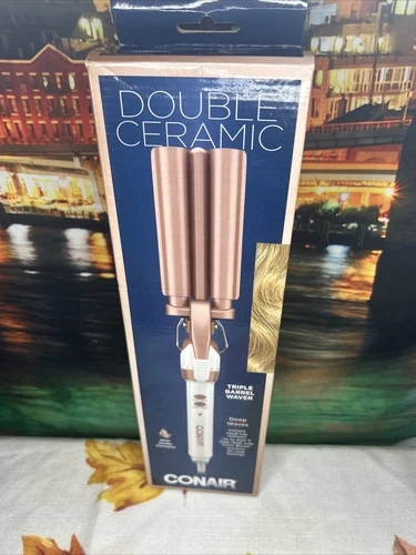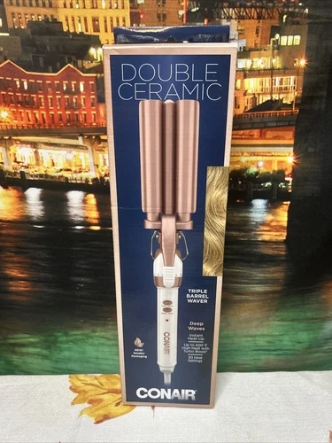 Make deep, gorgeous waves with the Conair Double Ceramic Triple Barrel Waver. The triple barrel creates continuous, uniform waves, while the double ceramic technology delivers even heat for fast styling and long-lasting results. Outer barrels are 5/8 and the inner barrel creates gorgeous continuous waves to switch up your everyday style. This waver has twice the ceramic content to ensure shiny results and deliver even heat. With 30 heat settings + Turbo boost, this tool heats up to 375F and has 30 heat settings for all hair types. Auto-Off feature included.