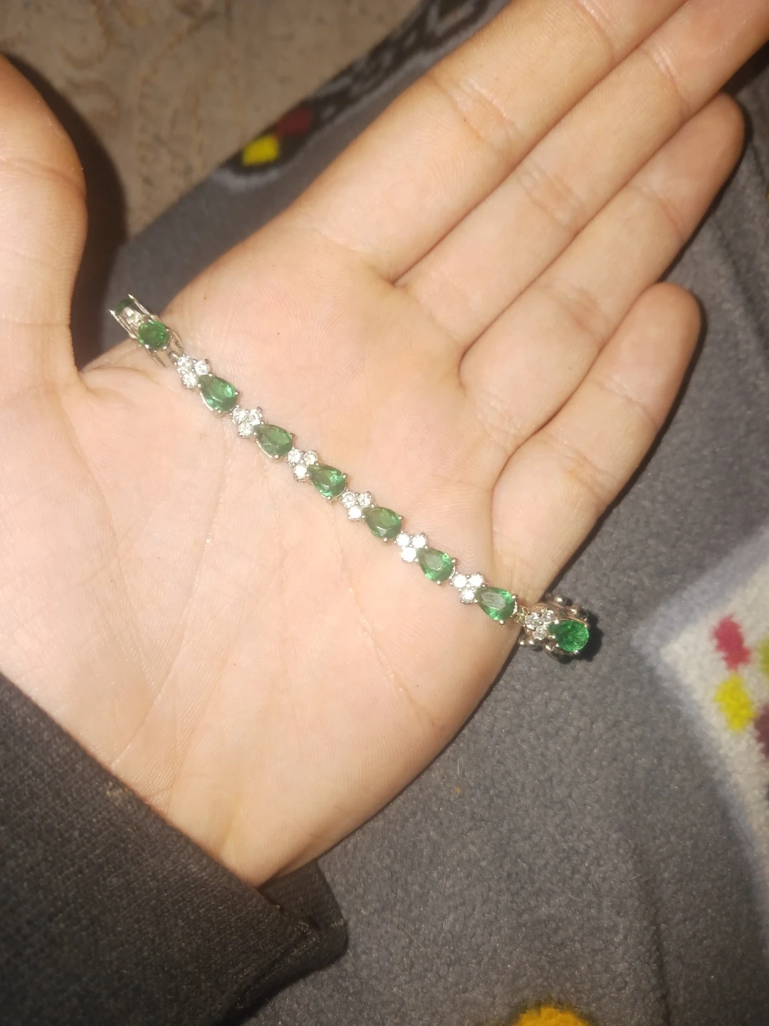 Beautiful emerald and diamond bracelet. It features a delicate design with alternating emerald and diamond stones. Perfect for adding a touch of elegance to any outfit!
