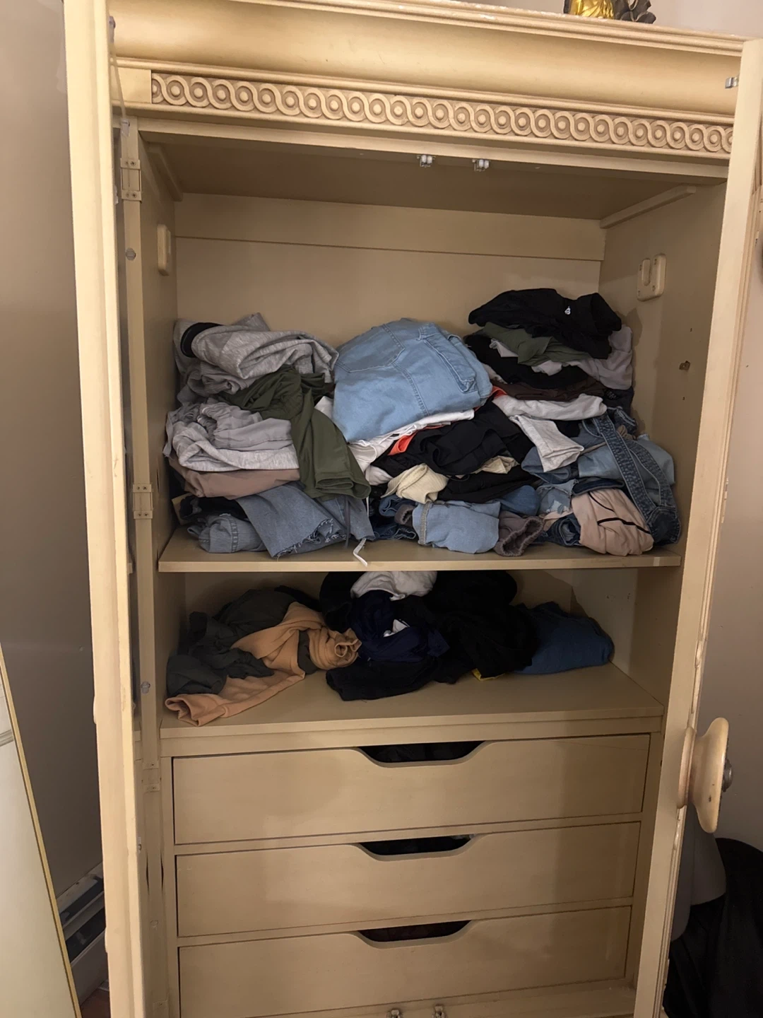 Selling a vintage armoire wardrobe closet. It has a classic design and offers plenty of storage space. It has shelves and drawers for organization. Great for adding a touch of elegance to any room!