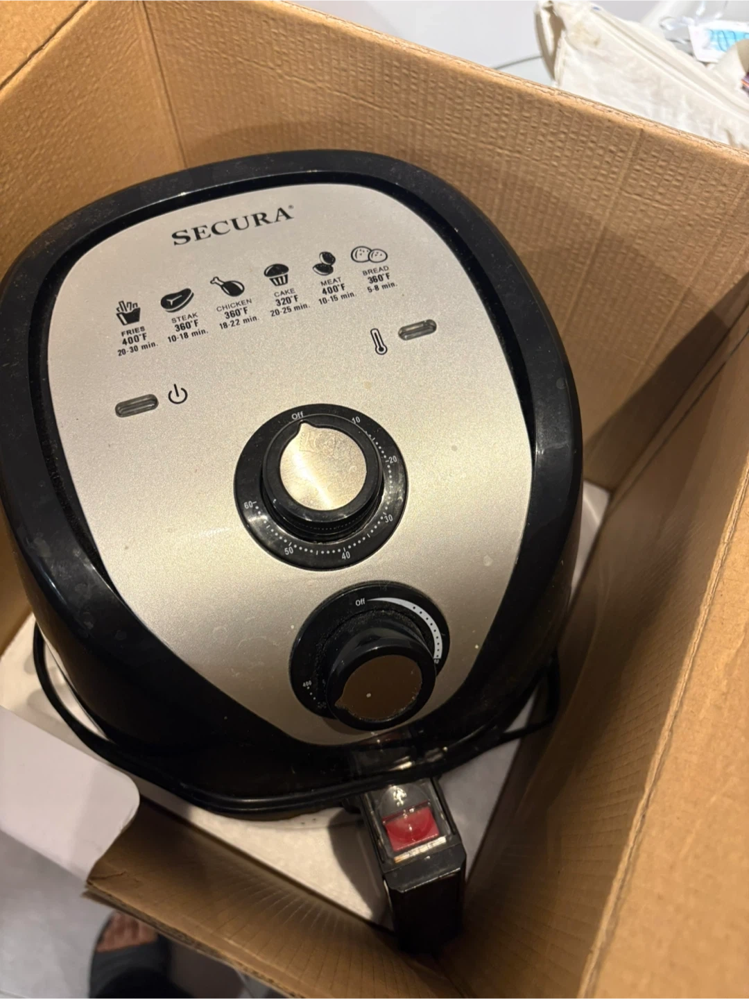 Selling a Secura Electric Hot Air Fryer, model TXG-DS12A. It's a 3.2L capacity fryer, perfect for household use. Comes with the original box. Its used but still works.