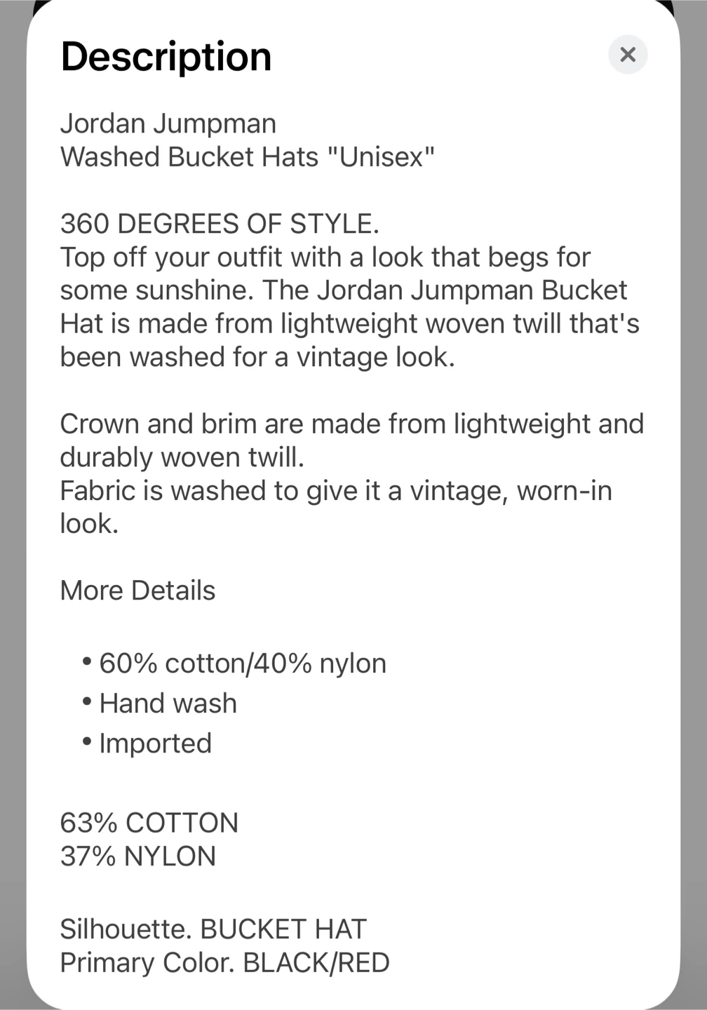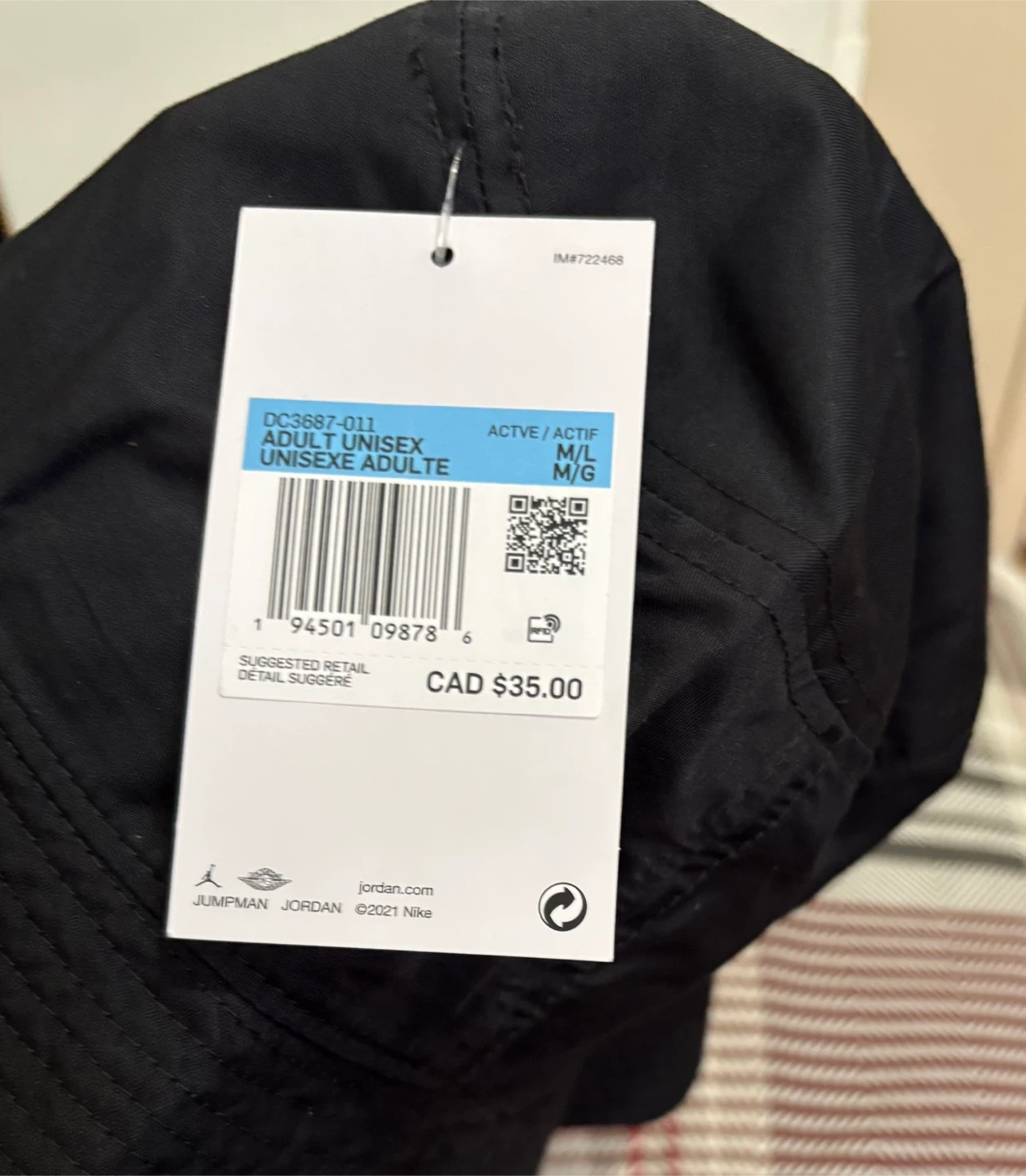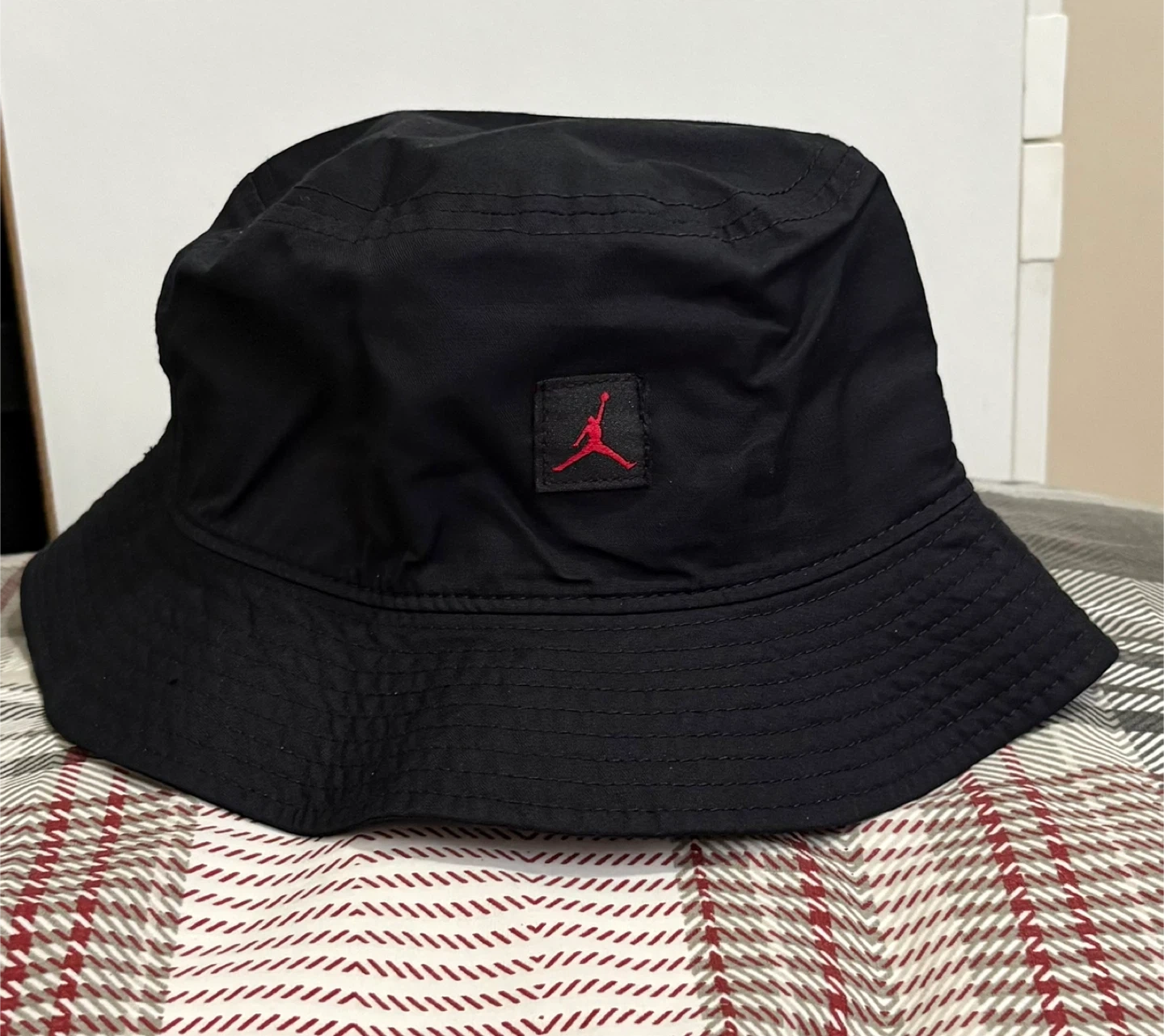 Selling a Jordan Jumpman washed bucket hat in black and red. It's a unisex adult size M/L.