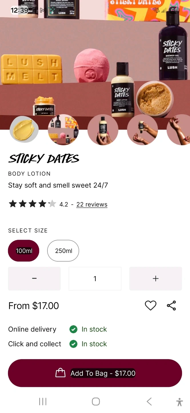 Selling a bottle of Lush Sticky Dates body lotion. This lotion is 100ml and promises to keep your skin soft and smelling sweet all day long! It's a great way to treat yourself