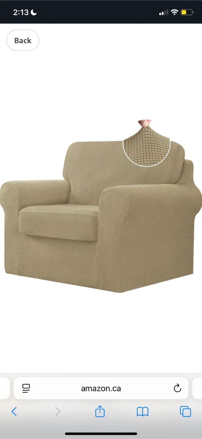 Selling a Chun Yi sofa slipcover! It's in a chair/loveseat/ arm chair size and is machine washable. It is a beige colour, on Amazon it is the “sand” colour in the waffle texture. PLEASE NOTE: it came as a 2 pc set, the frame and the bottom cushion. In great condition as it was very breifly used and ready for a new home.