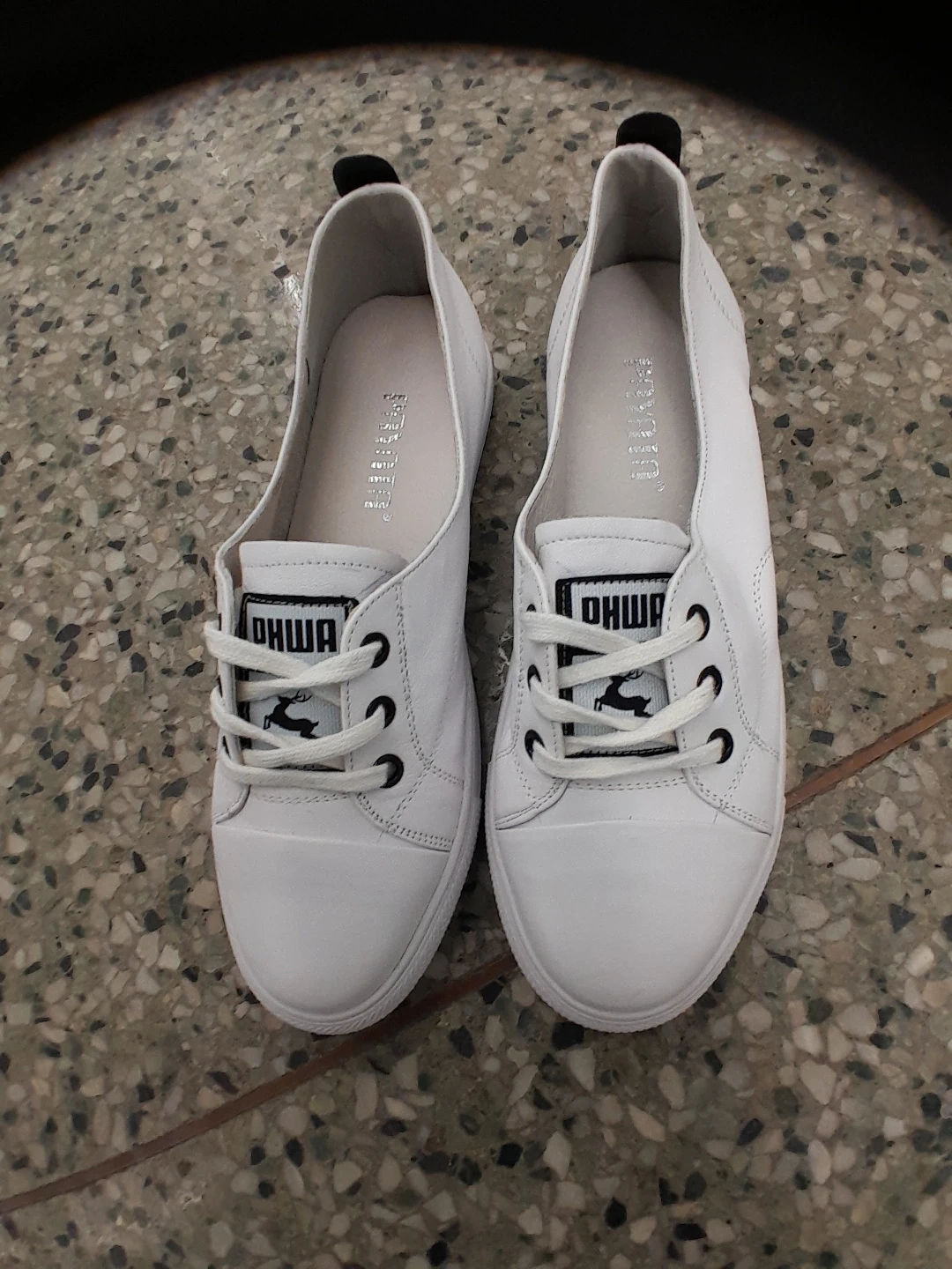 Payala white leather sneakers. They're in great condition and would be perfect for everyday wear! They feature a classic design with black accents on the laces and sole women's size 8