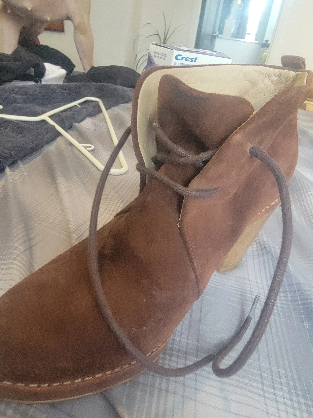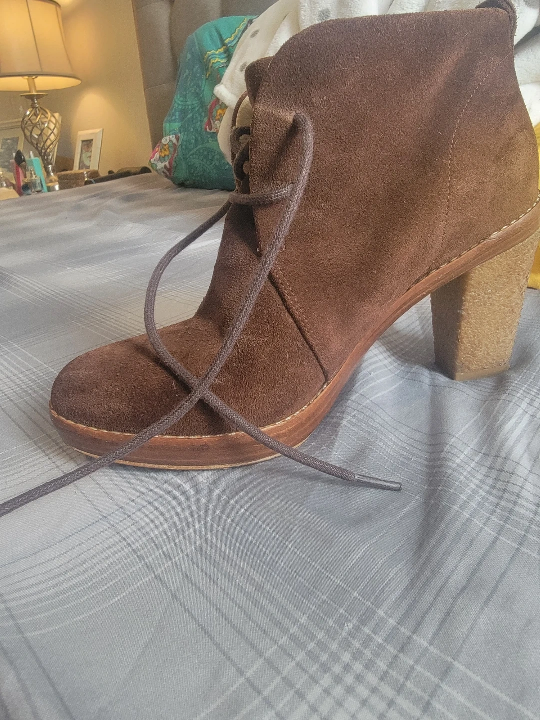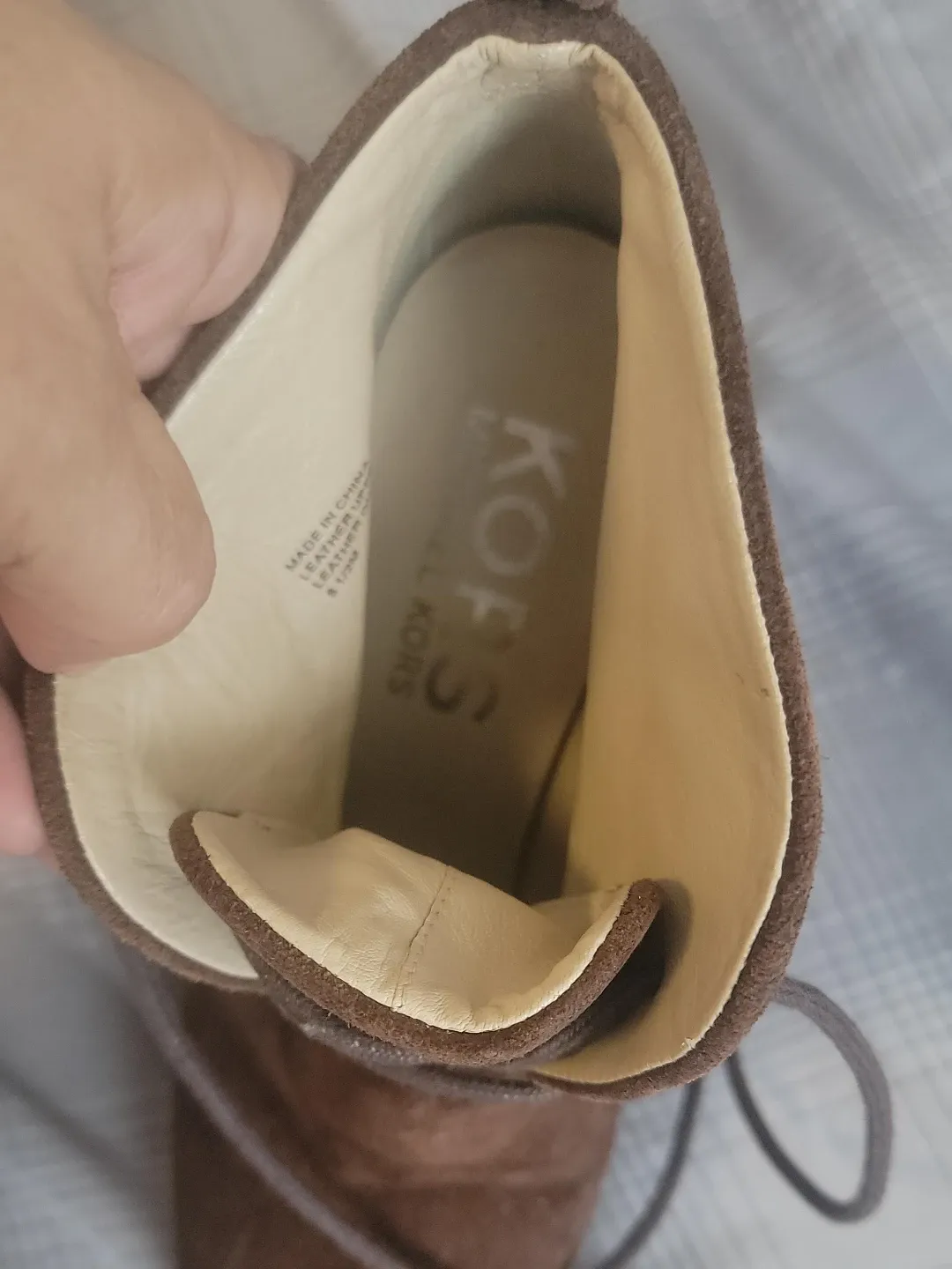 Selling a pair of Michael Kors brown suede booties in size 8. They're in good condition and ready for a new home! The material is suede and they have a wooden heel
