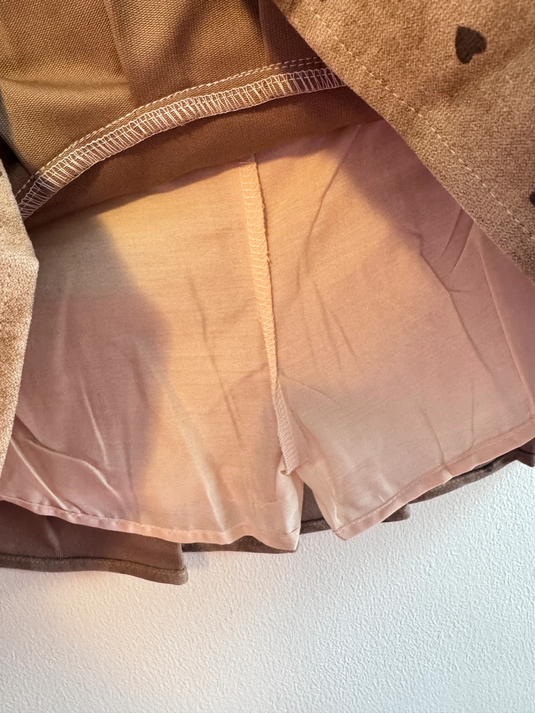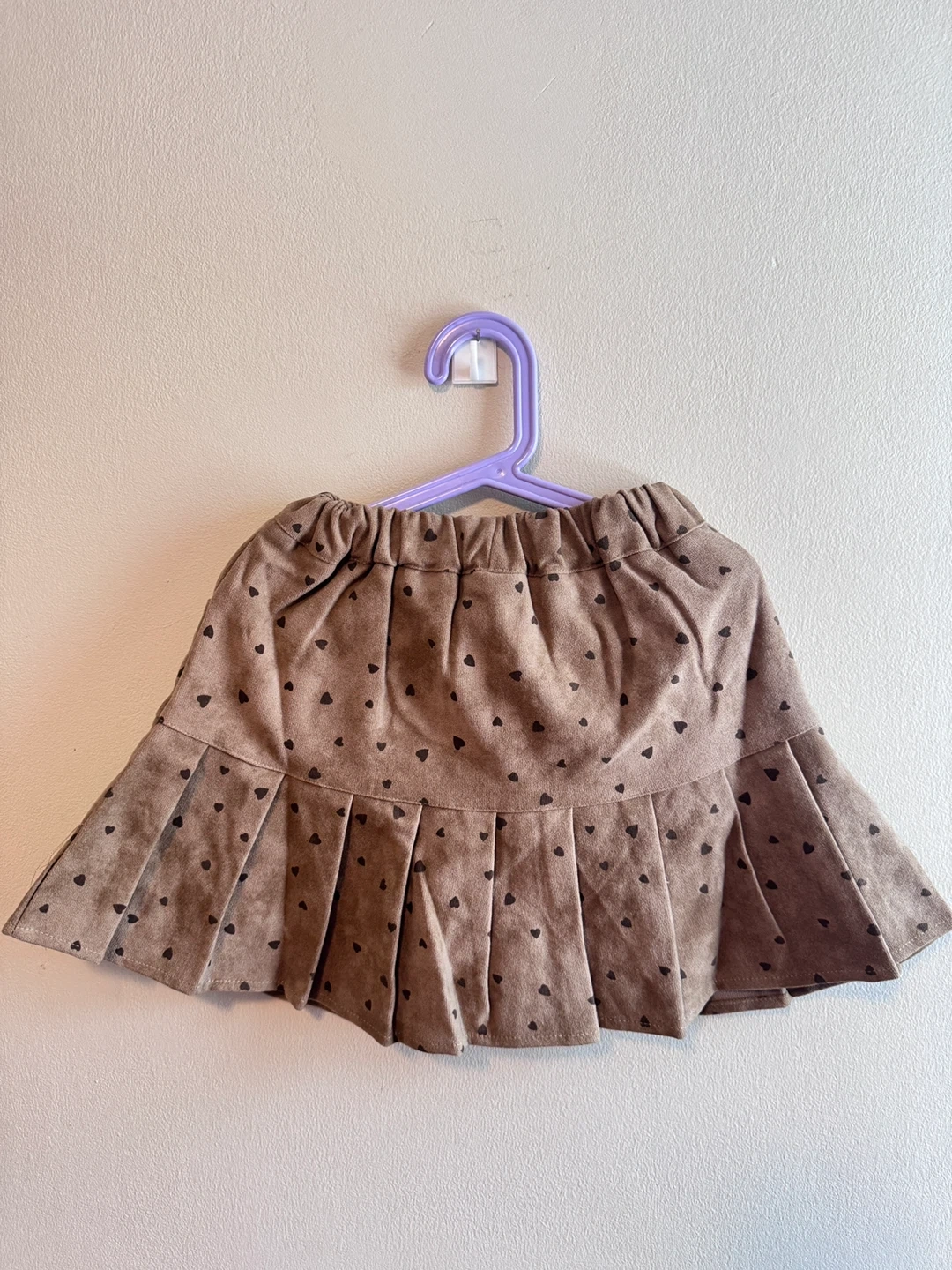 Super cute Hello Kitty sweater and skirt set! The sweater is a soft white with a brown collar and a Hello Kitty design on the front. The skirt is brown with a heart pattern. 80% cotton material.