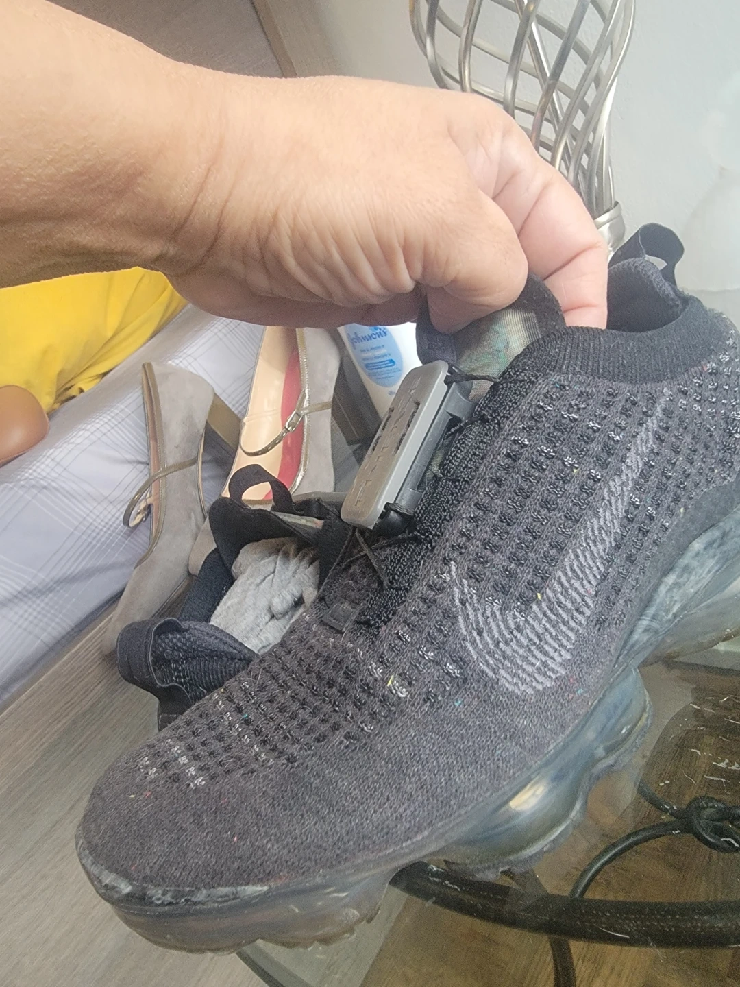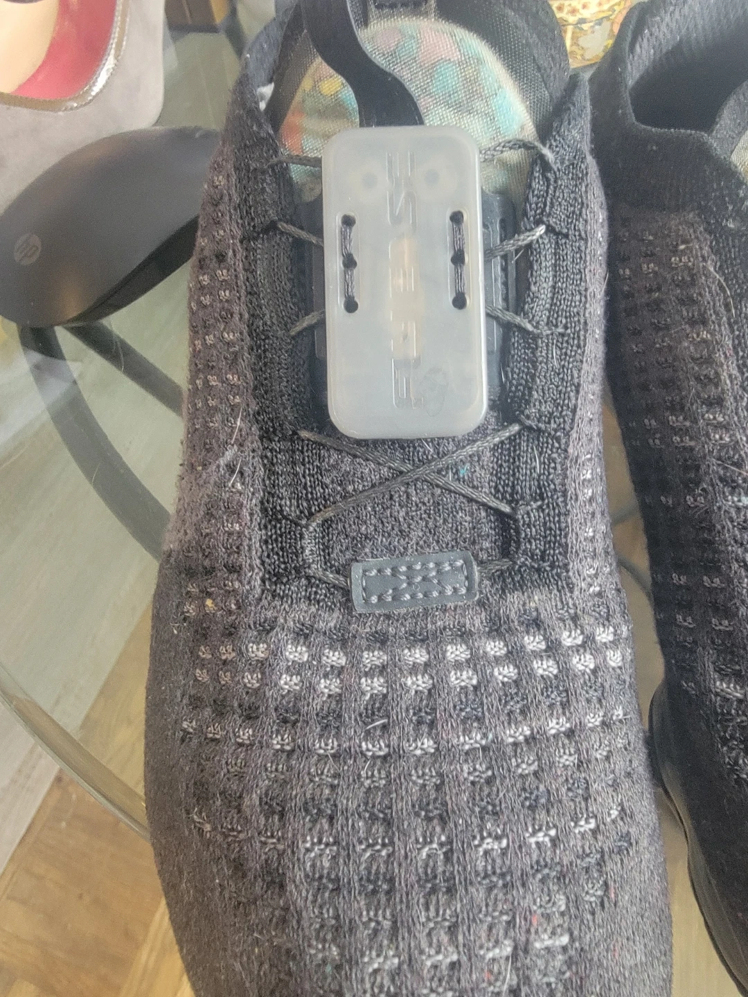 Selling a pair of Nike Air VaporMax 2023 Flyknit shoes. They're in good condition and feature a unique lacing system. Perfect for running or everyday wear!