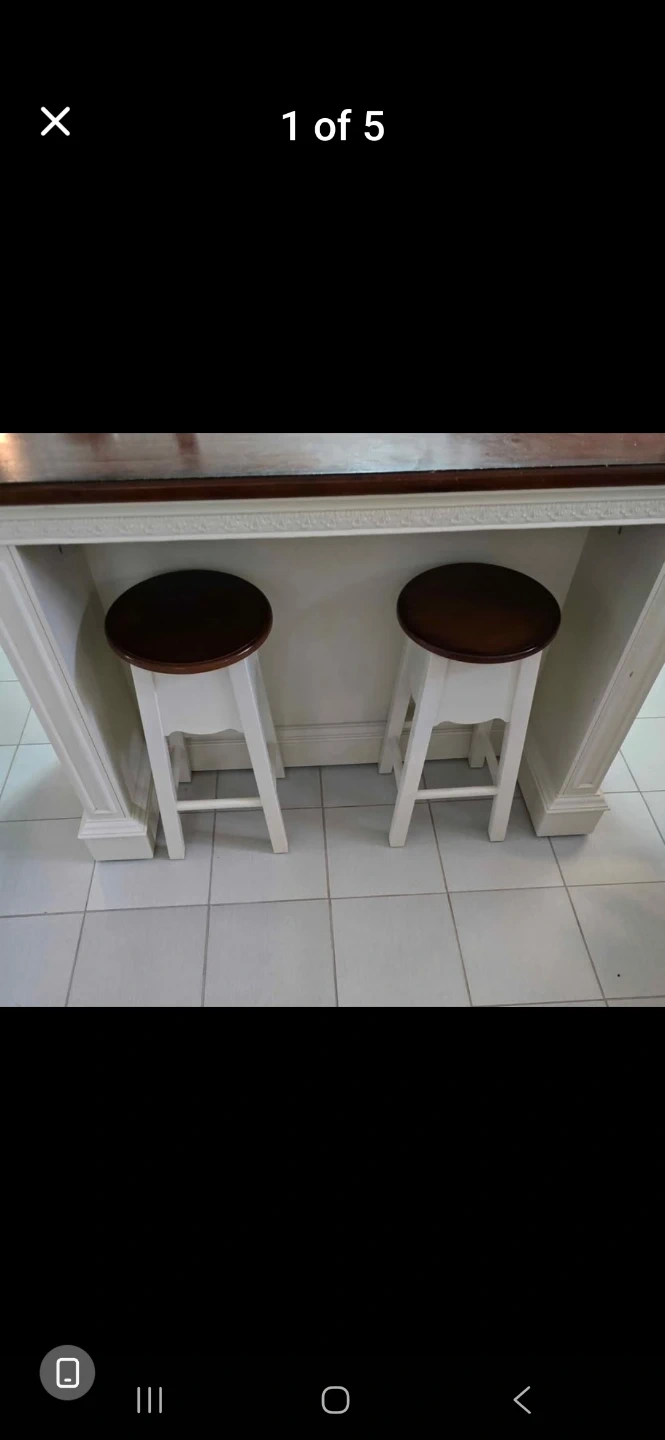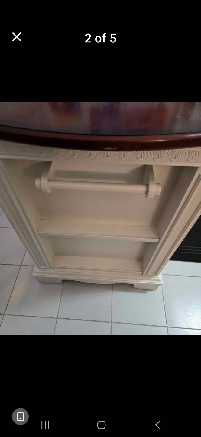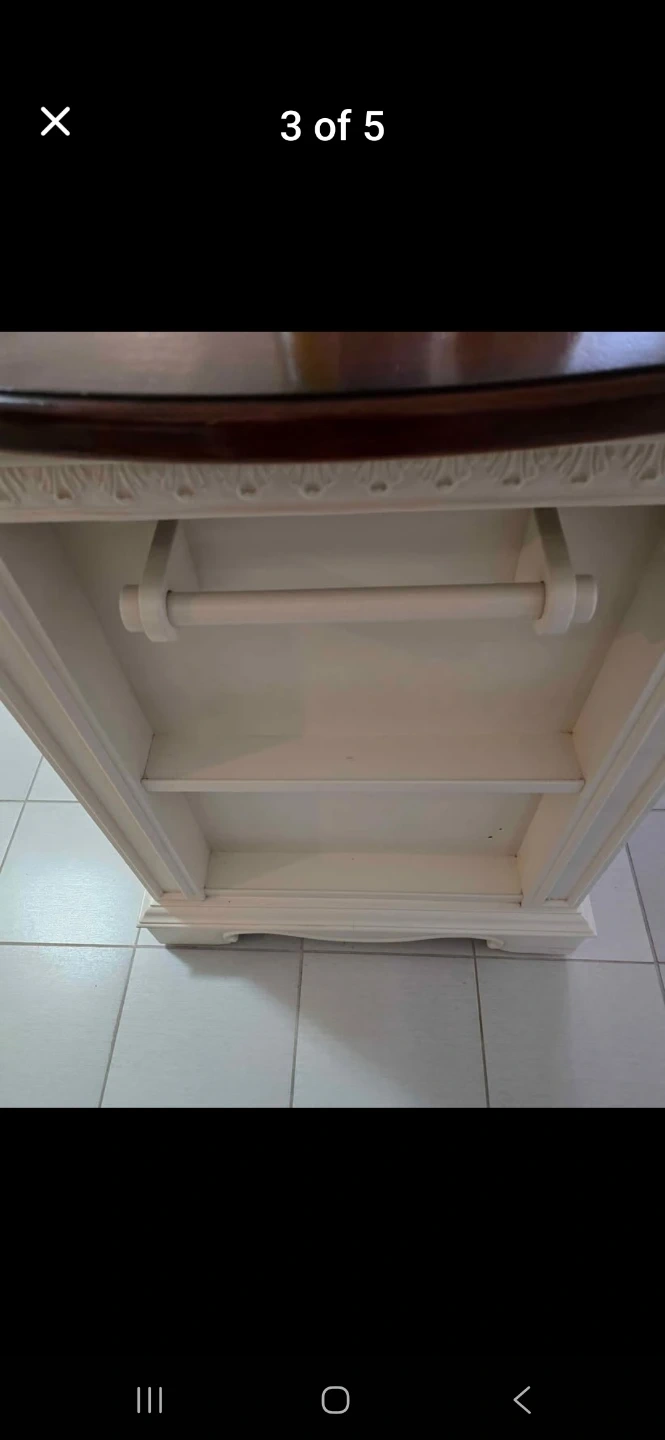 Selling a kitchen island with a dark brown top and white base, includes matching stools. It features drawers, cabinets, and a towel rack. Perfect for adding extra counter space and storage to your kitchen!