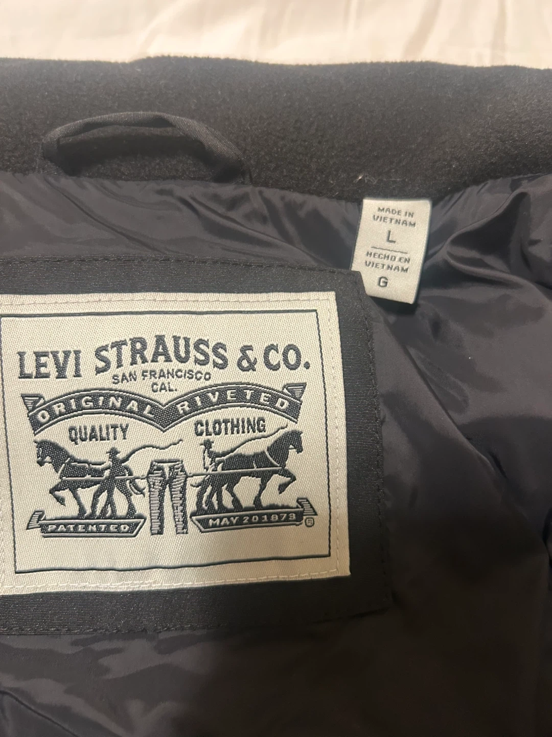 Selling a Levi's puffer jacket in black. It's a size large and in great condition.