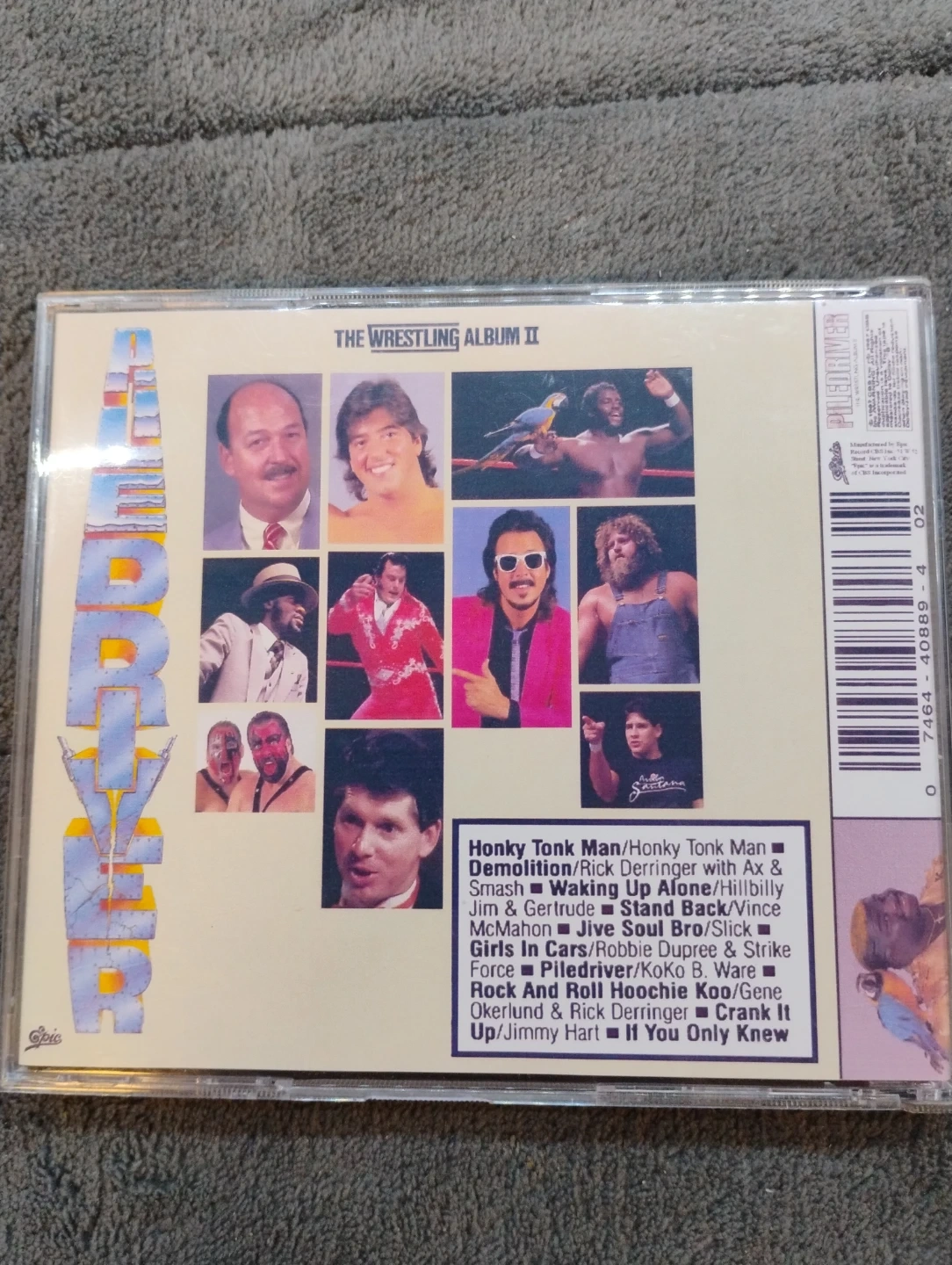 Selling a copy of Piledriver: The Wrestling Album II on CD! This is a fun piece of wrestling history with some catchy tunes. The CD and case are in good condition and ready for a new home. Track list includes Honky Tonk Man, Demolition, Stand Back, and more!